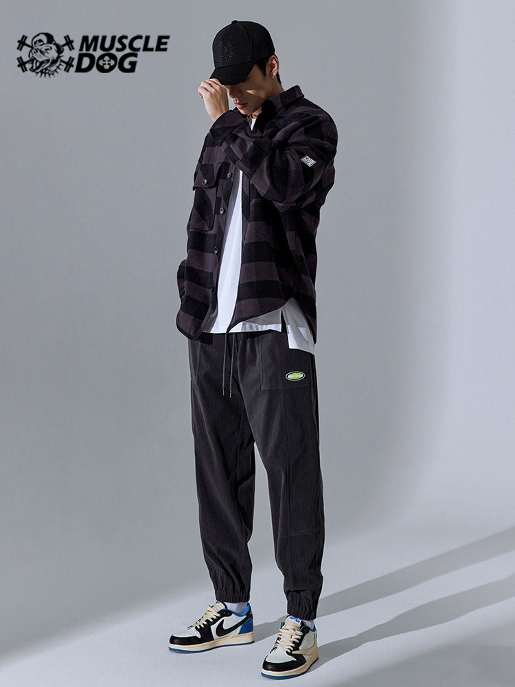 Muscle Dog Tide Brand Spring and Autumn New Corduroy Loose Beam Foot Training Fitness Pants Sports Leisure Trousers Men