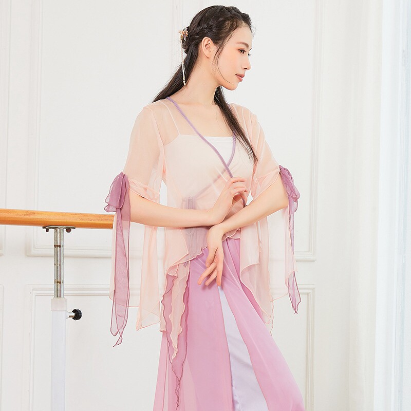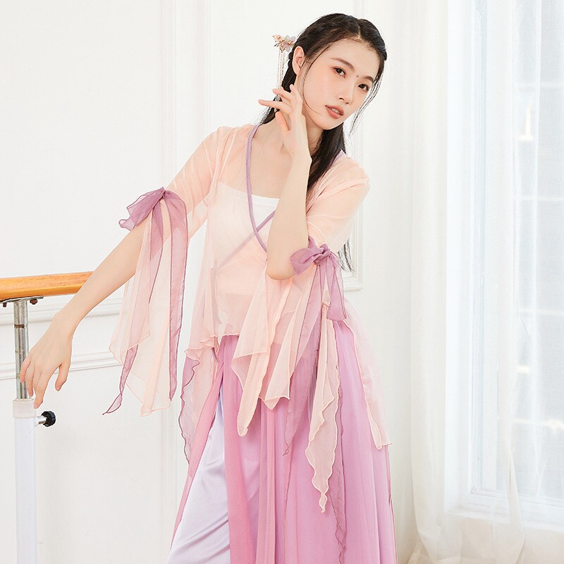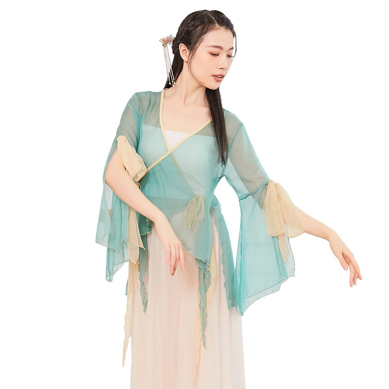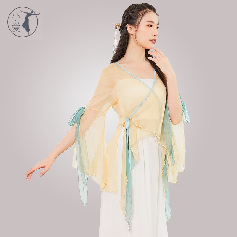 Classical dance performance clothing streamer chiffon Chinese style rhyme gauze art test Chinese style dance top light apricot