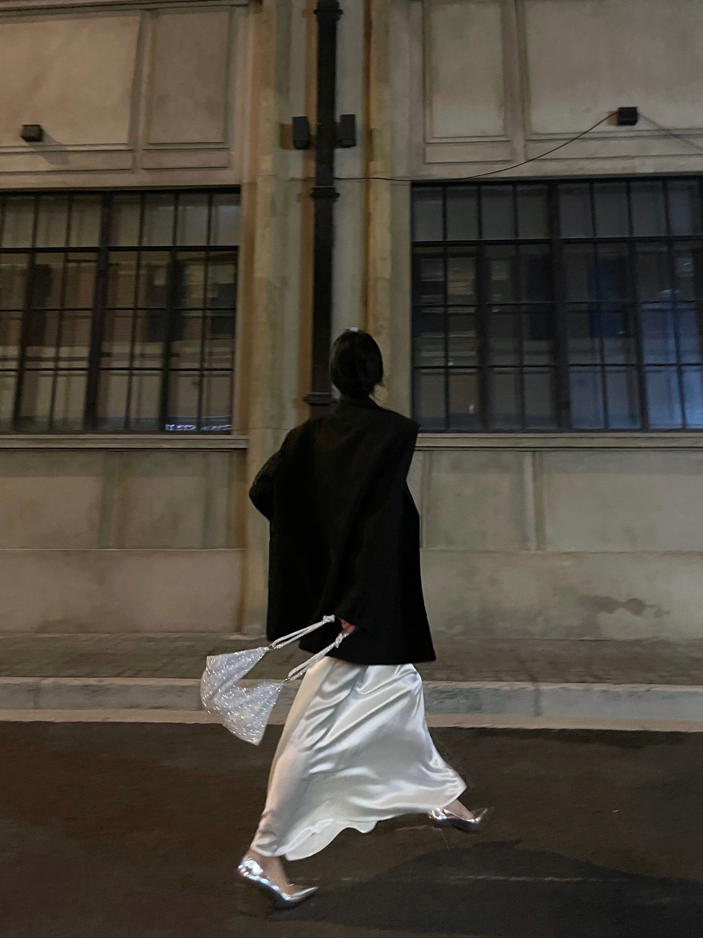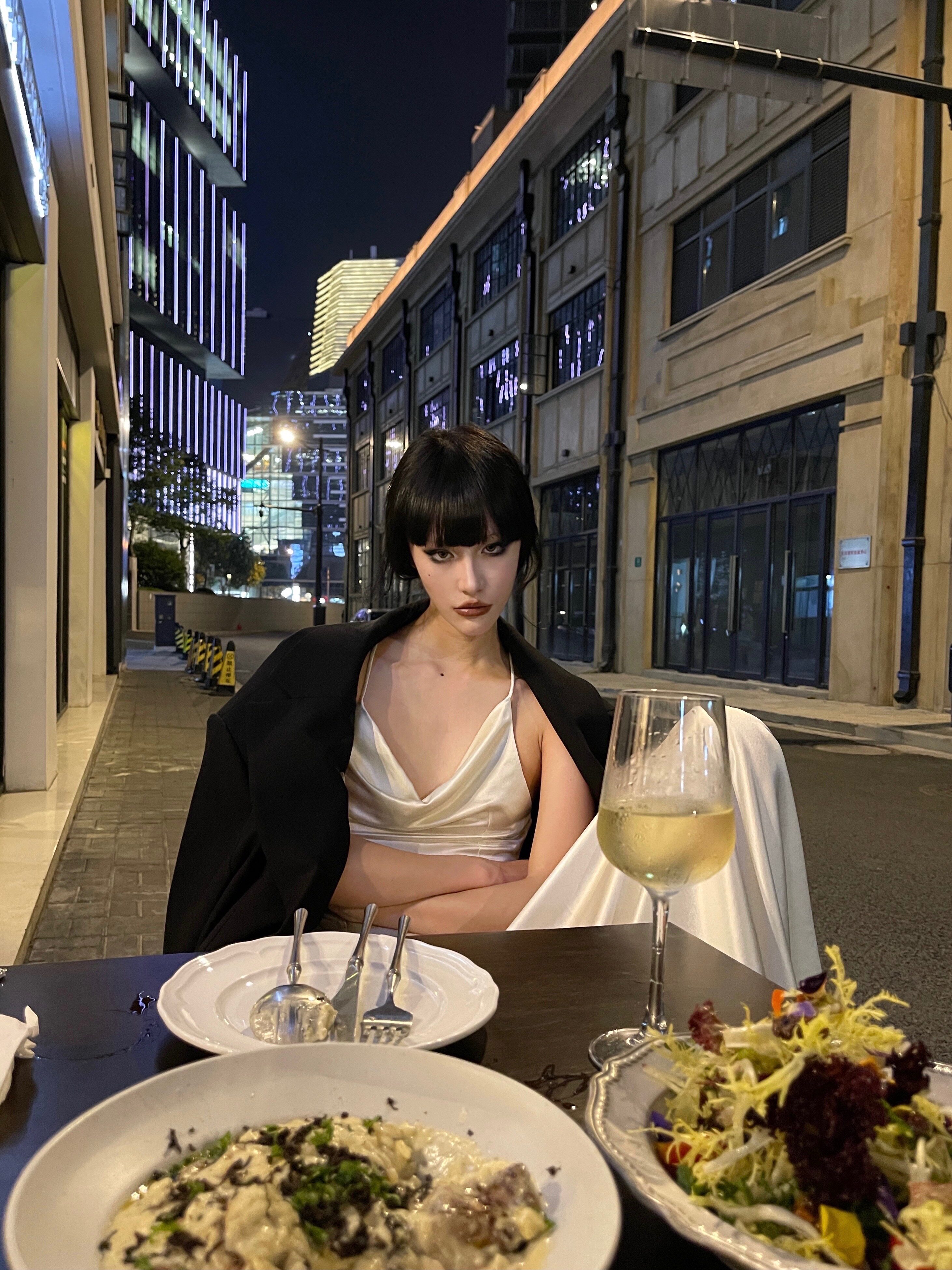 0122stepll Show Scene Inspiration style spicy girl with body-led back pearl white acetate Sling Gift Dress-Taobao