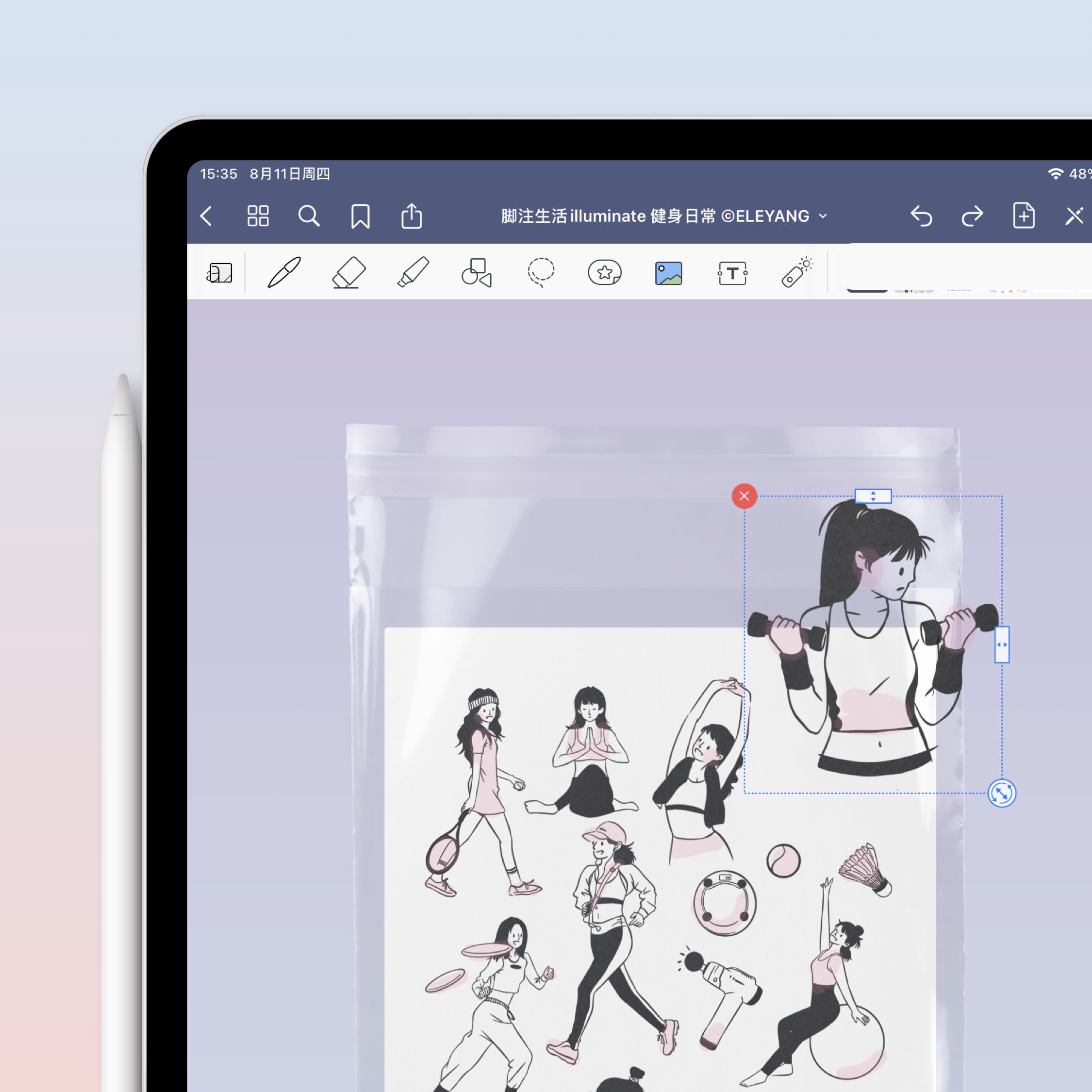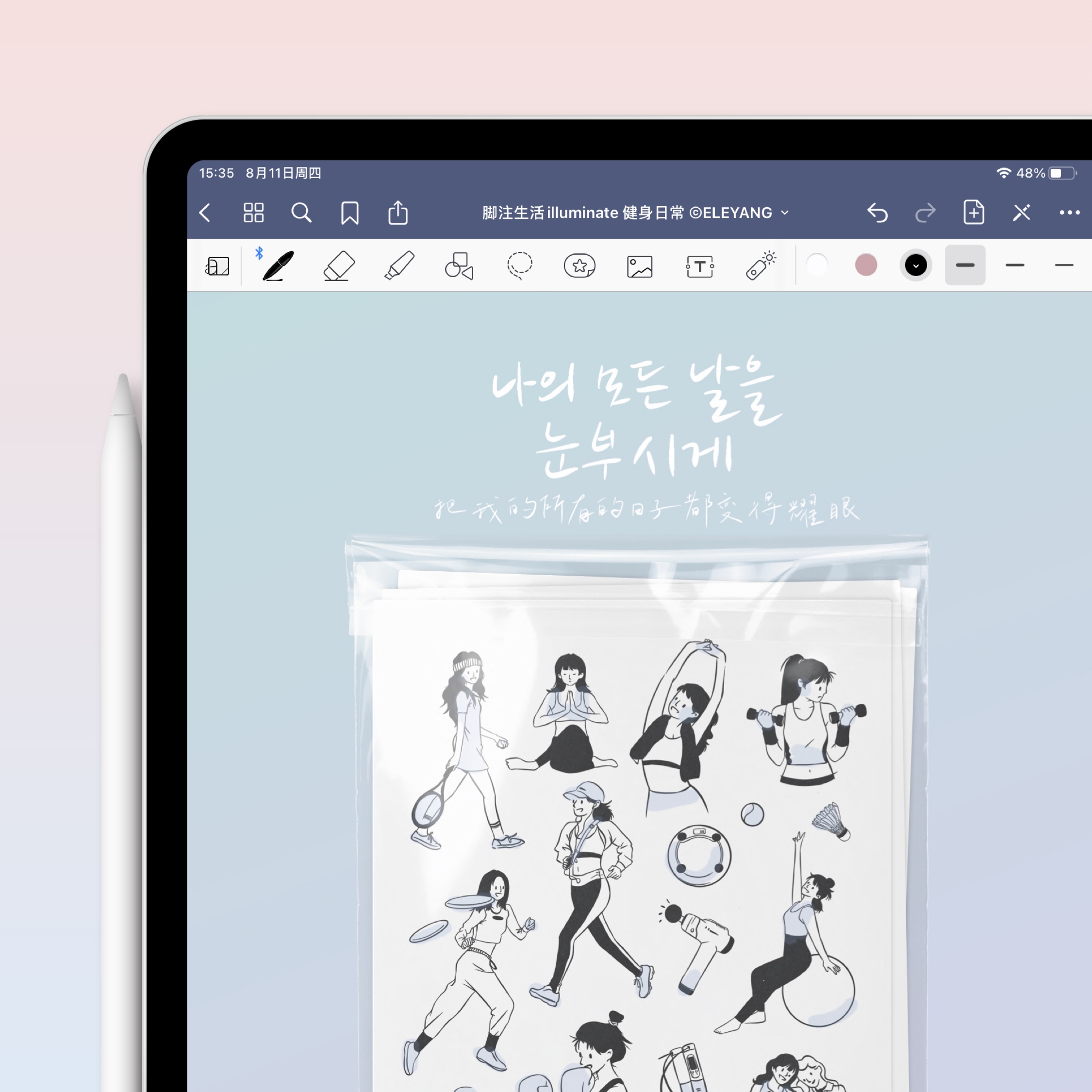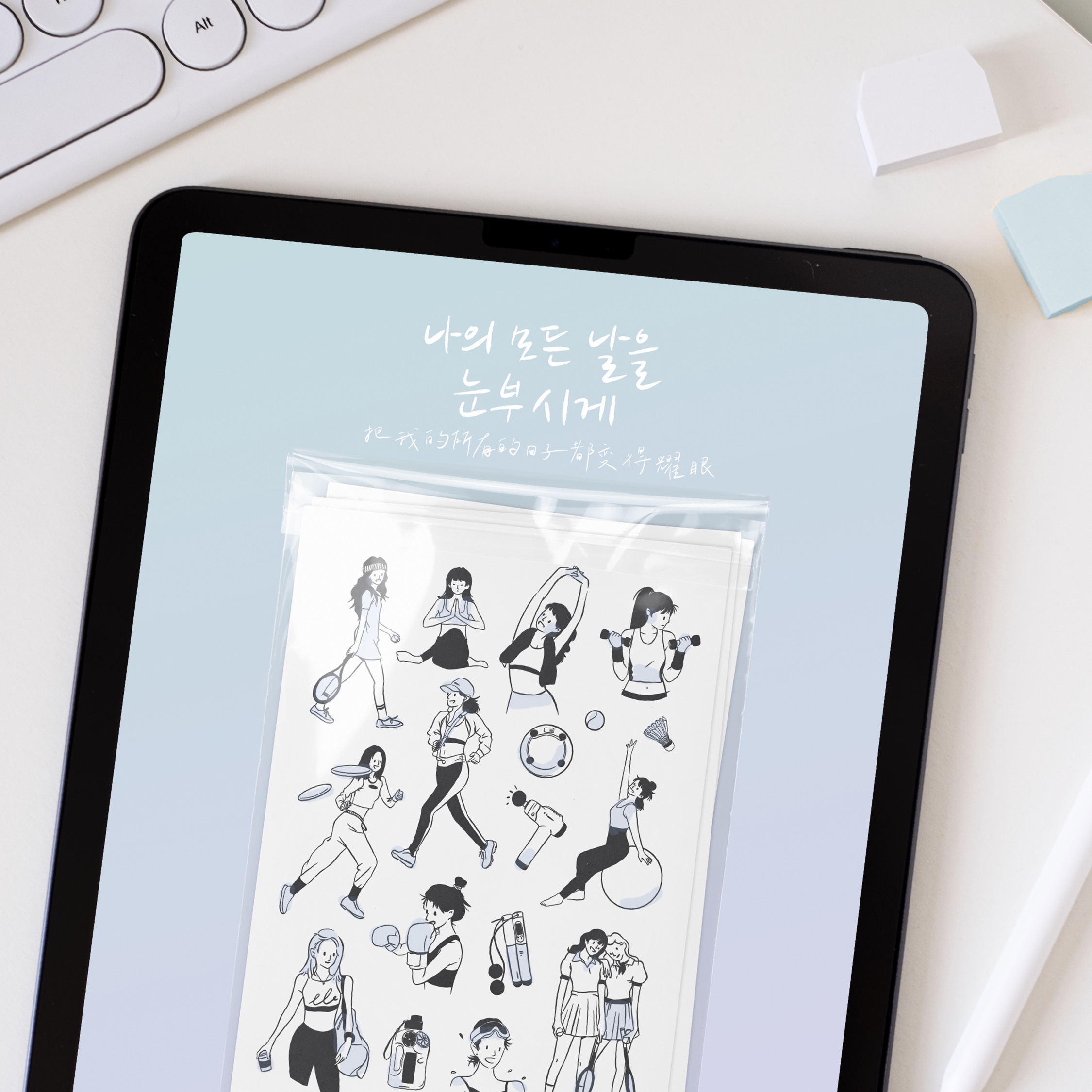 Fitness exercise daily) cutout-free transparent sticker material book) original illustration) iPad electronic handbook) hungry sheep