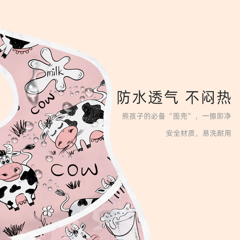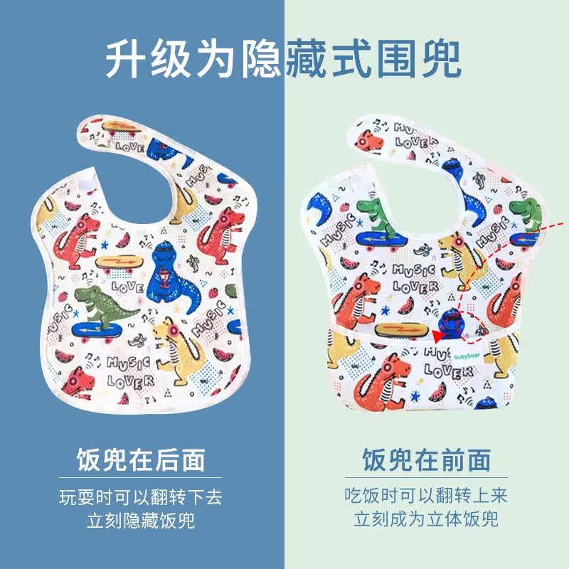 Busybear baby baby child eats dinosaur cow cartoon around the waterproof mouth to feed the pocket