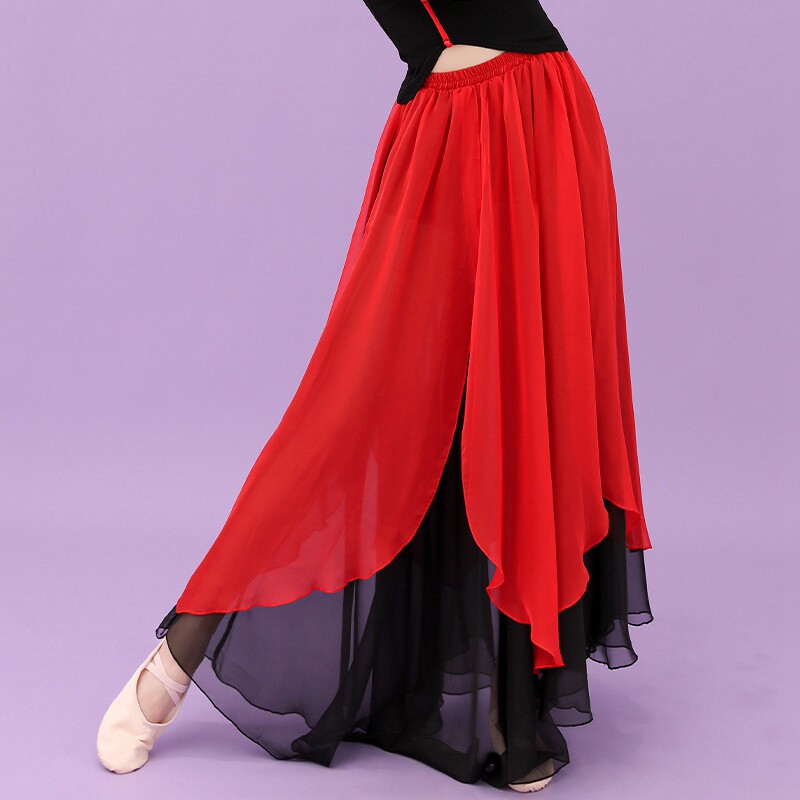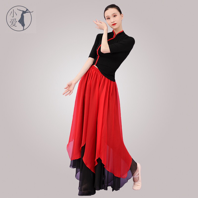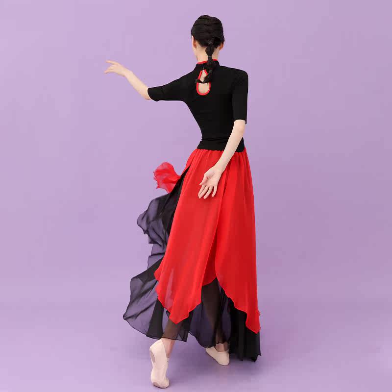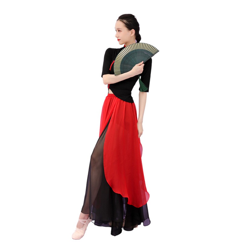 Modern dance clothes Chinese style button national classical dance clothes high-end red and black two-color skirt with back opening ancient body rhythm elastic