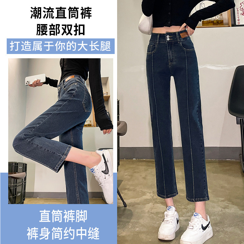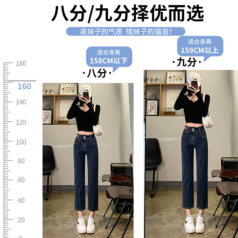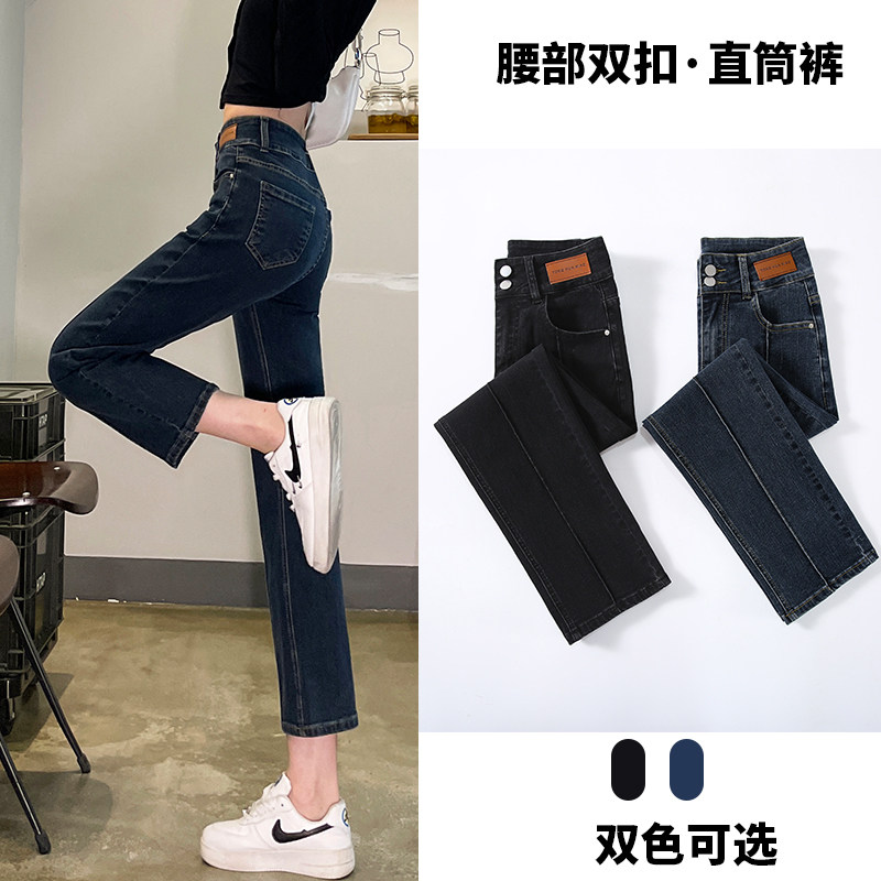 Black straight-leg jeans women's autumn 2022 new small 9-point high-waisted slim nine-point pants trendy ins