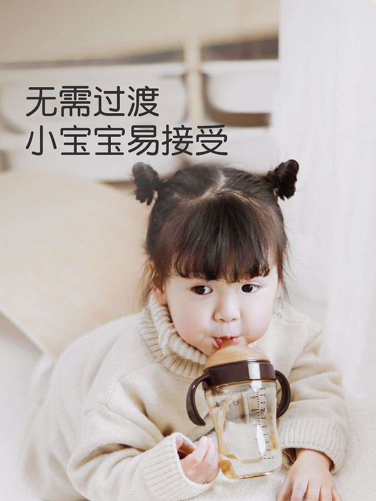 Shixi Learns to drink cup duckmouth cup baby more than 7 months PPSU drink glass gravity ball straw cup 1 year old