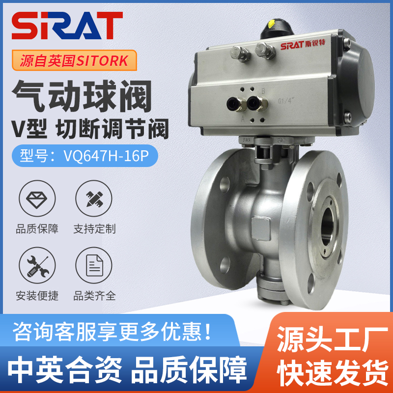 VQ647H-16P high temperature steam pulp stainless steel flange pneumatic V-type regulating ball valve quick cut off switch