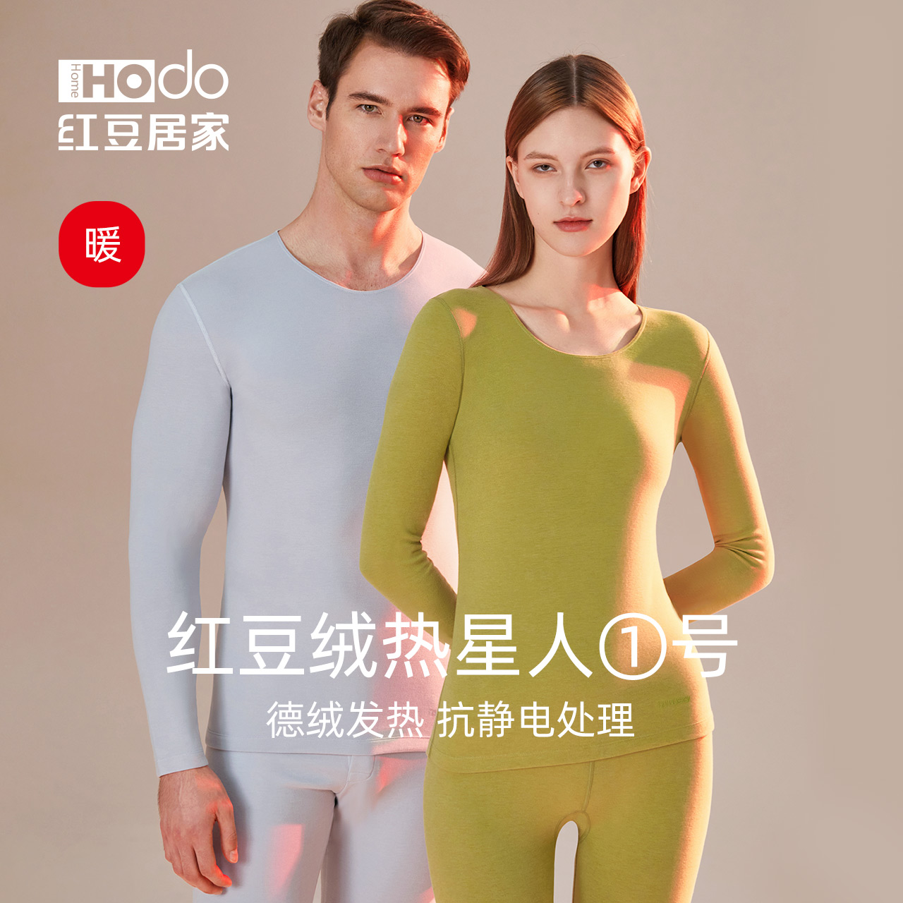 Red Bean Suede Fever Underwear Autumn Clothes Autumn Pants Men's Down Beat Bottom Warm Suit Women Thickened Cotton Sweatshirt Winter-Taobao
