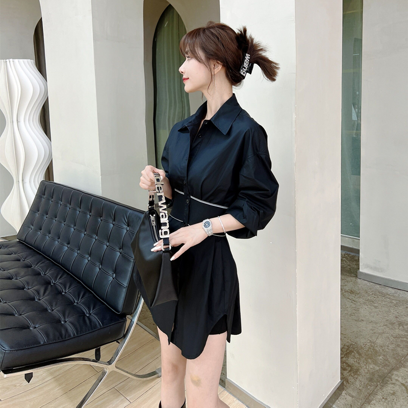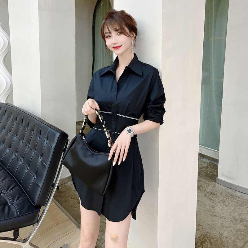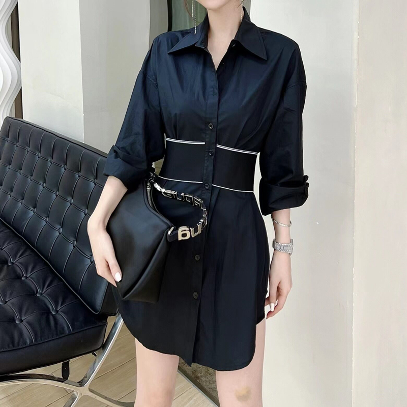 Kaka women's official flagship Han version of senior letters with a thin shirt tight waist dress
