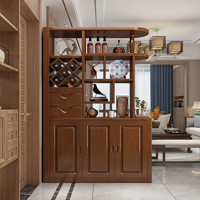 New solid wood porch cabinet shoe cabinet living room screen partition wine cabinet Chinese style modern minimalist double-sided living room cabinet entry - Taobao
