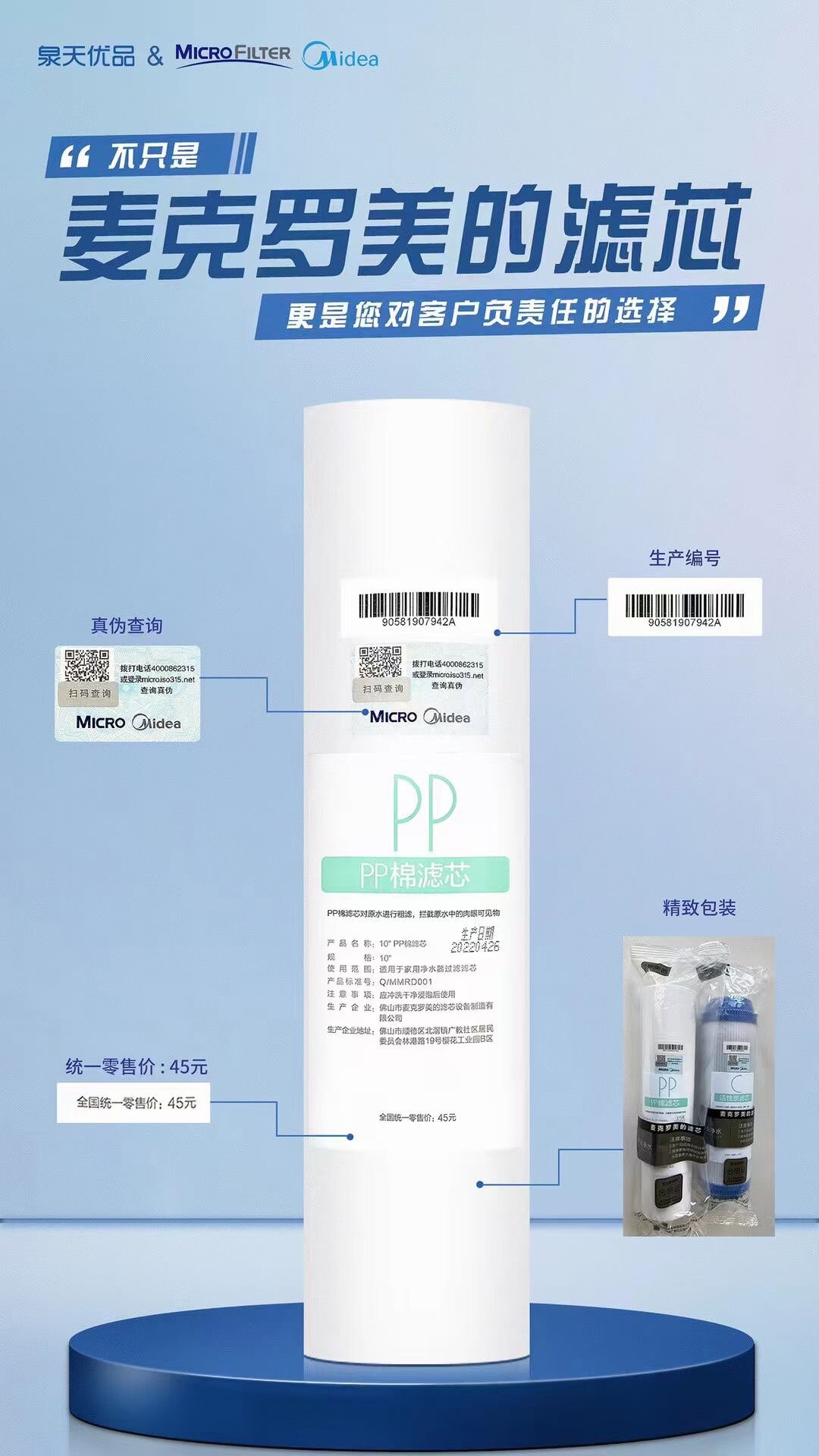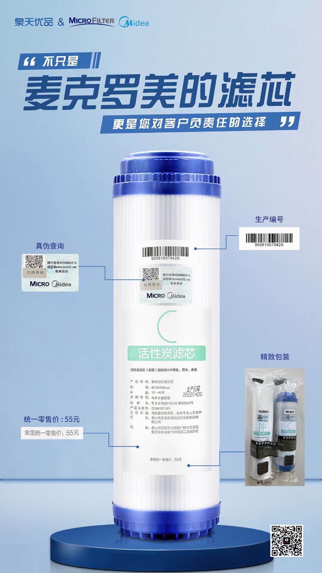Midea water purifier filter element PP cotton granular activated carbon TW30-75ro reverse osmosis membrane T33 rear activated carbon