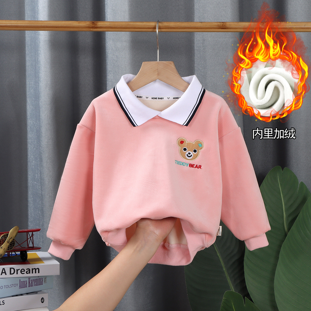 Children's sweater boys and girls casual tops girls all-match fashion thick T-shirt Western style net red children's clothing plus velvet sweater