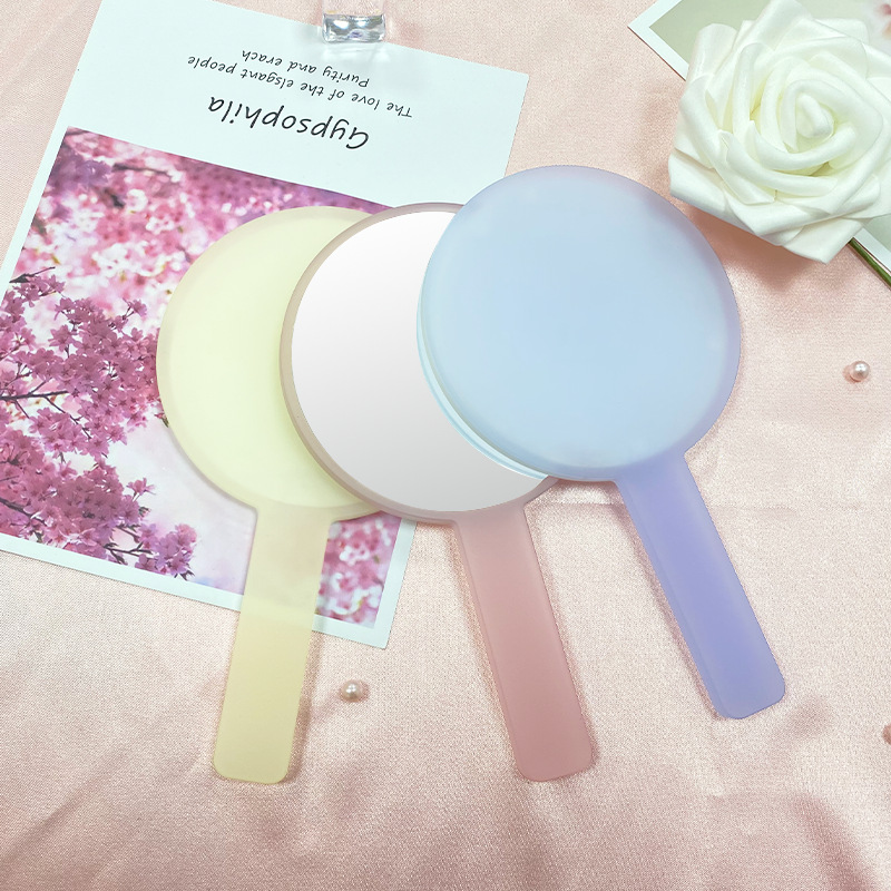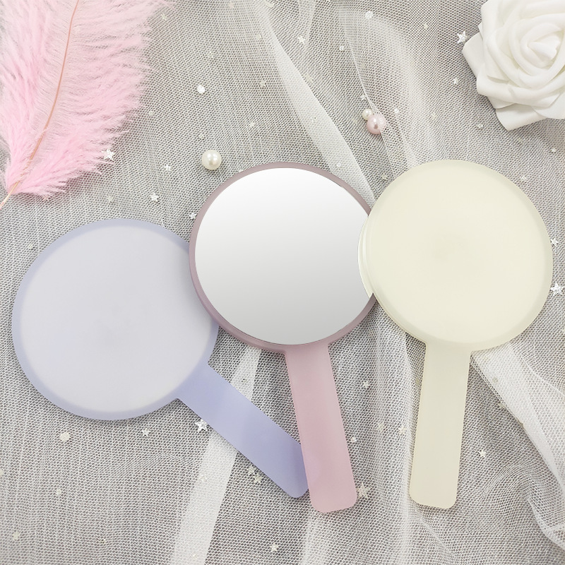 ins Korea transparent handle small mirror carry single-sided beauty gift hand-held makeup mirror round mirror