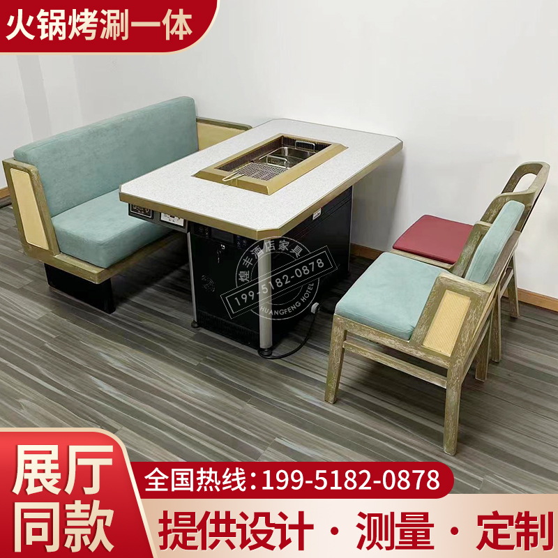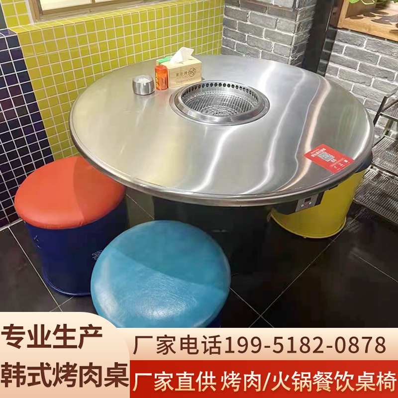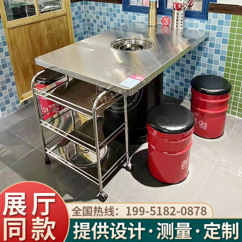 Stainless steel smoke-free hot pot table BBQ table Korean charcoal oil barrel tabletop barrel barbecue string chair