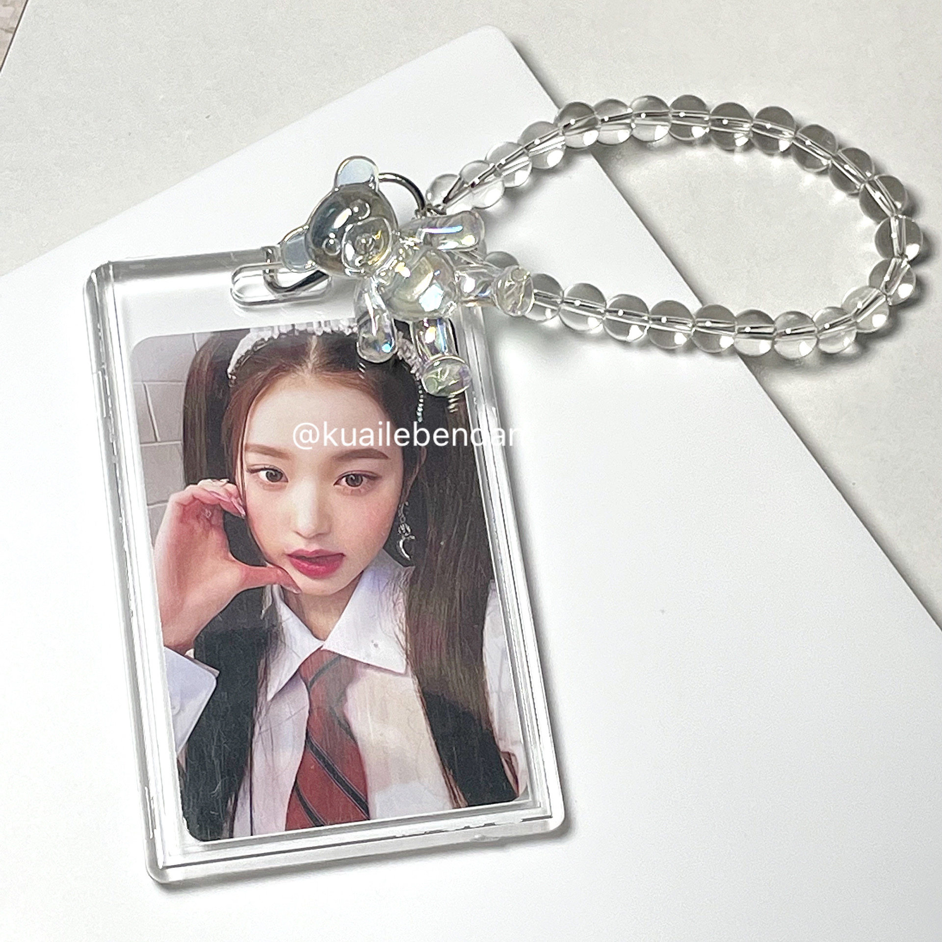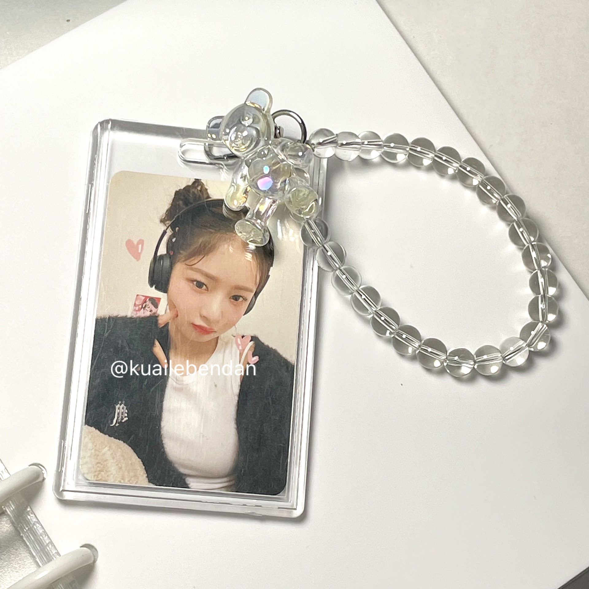 (High transparency slide cover) vertical card holder bear pendant (high transparency push hole) vertical card holder bear pendant bear pendant