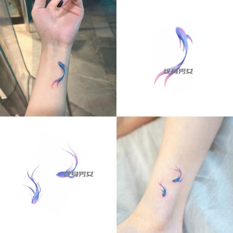 Tattoo sticker waterproof men and women lasting simulation of body sexy collarbone blue brocade carp stickers with wind-Taobao