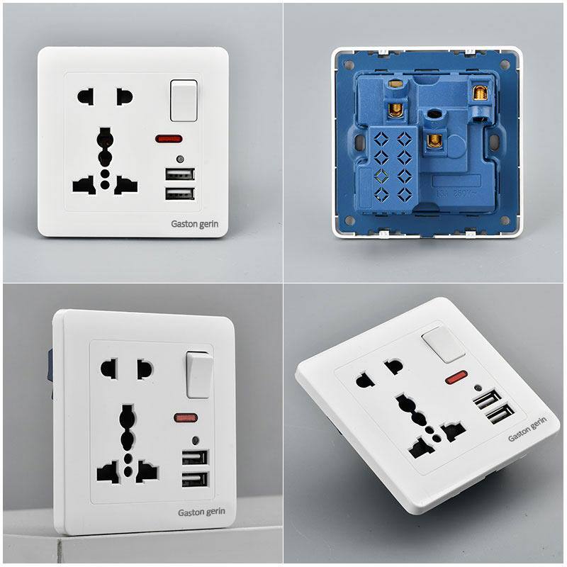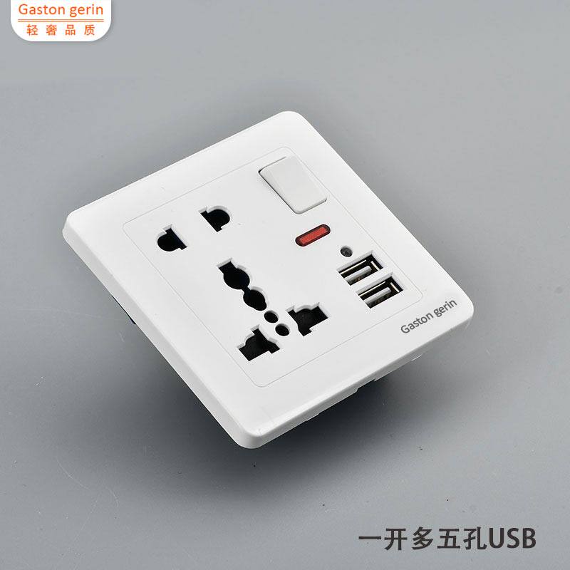 Five-hole 86-type USB mobile phone charging Hong Kong-style socket wall panel concealed multi-function 13A with switch 2 1A