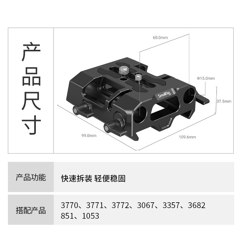 SmallRig Smog 15mm double pipe dovetail chute base compatible with ARRI standard dovetail sliding plate 4002-Taobao