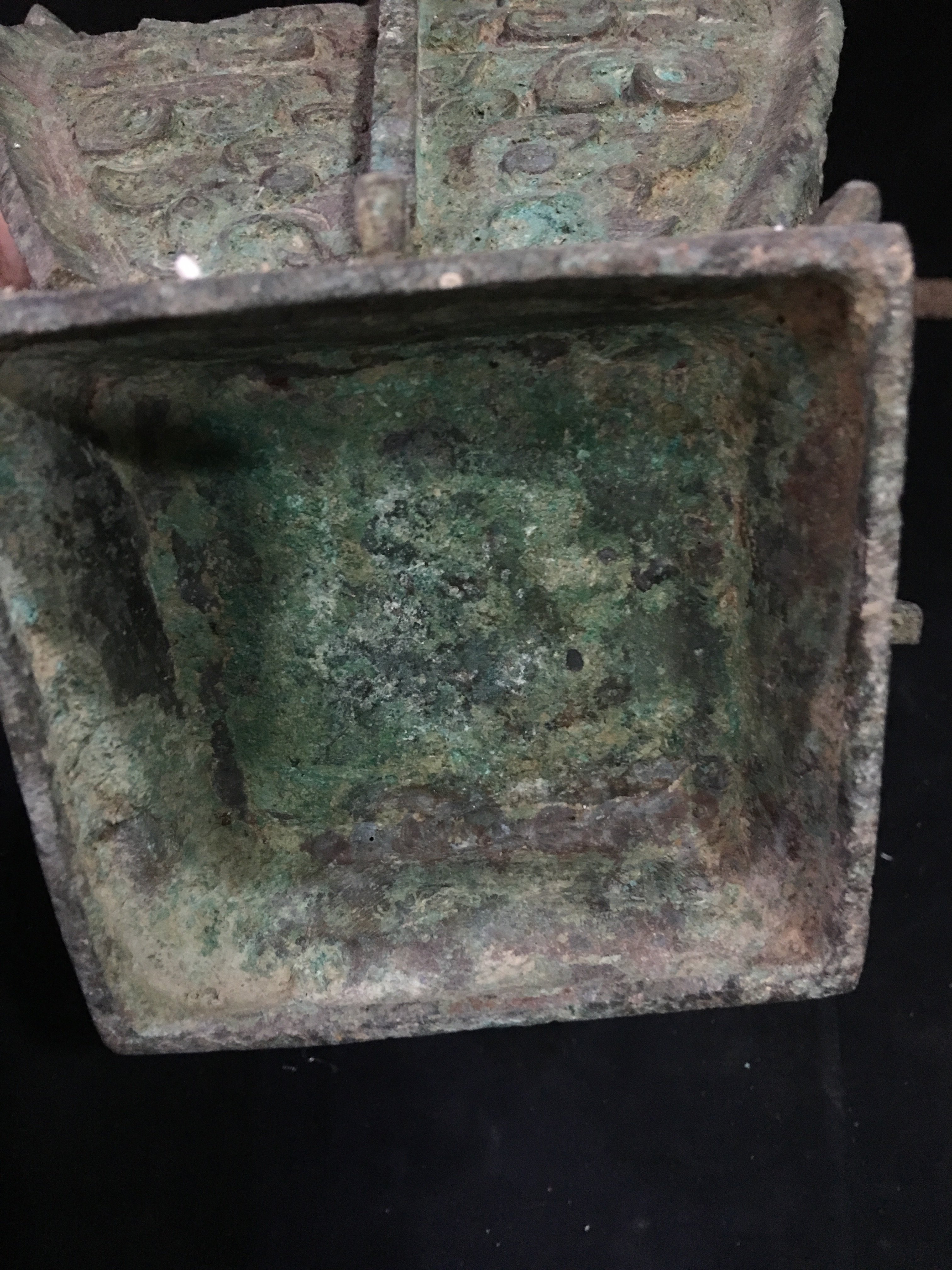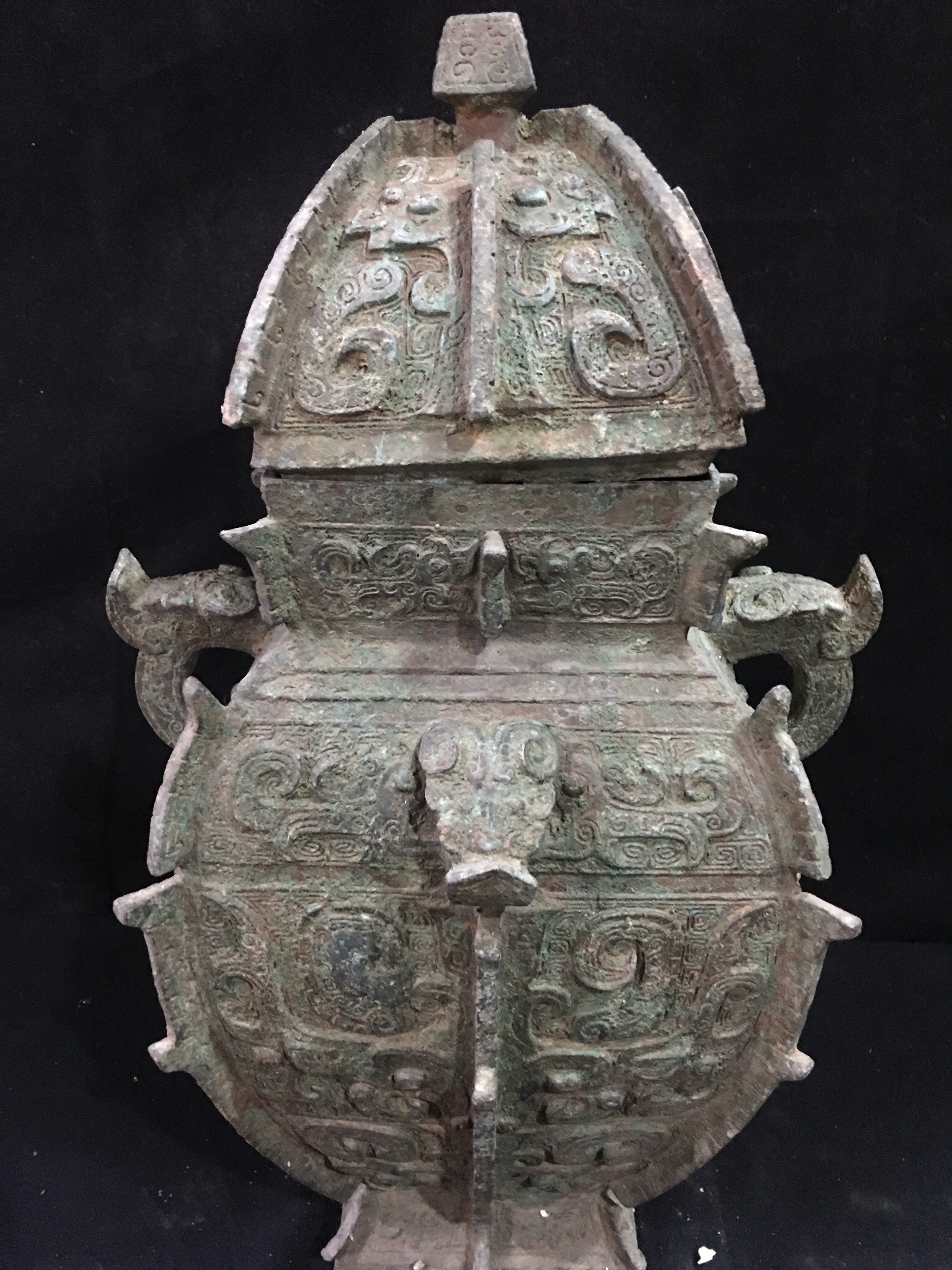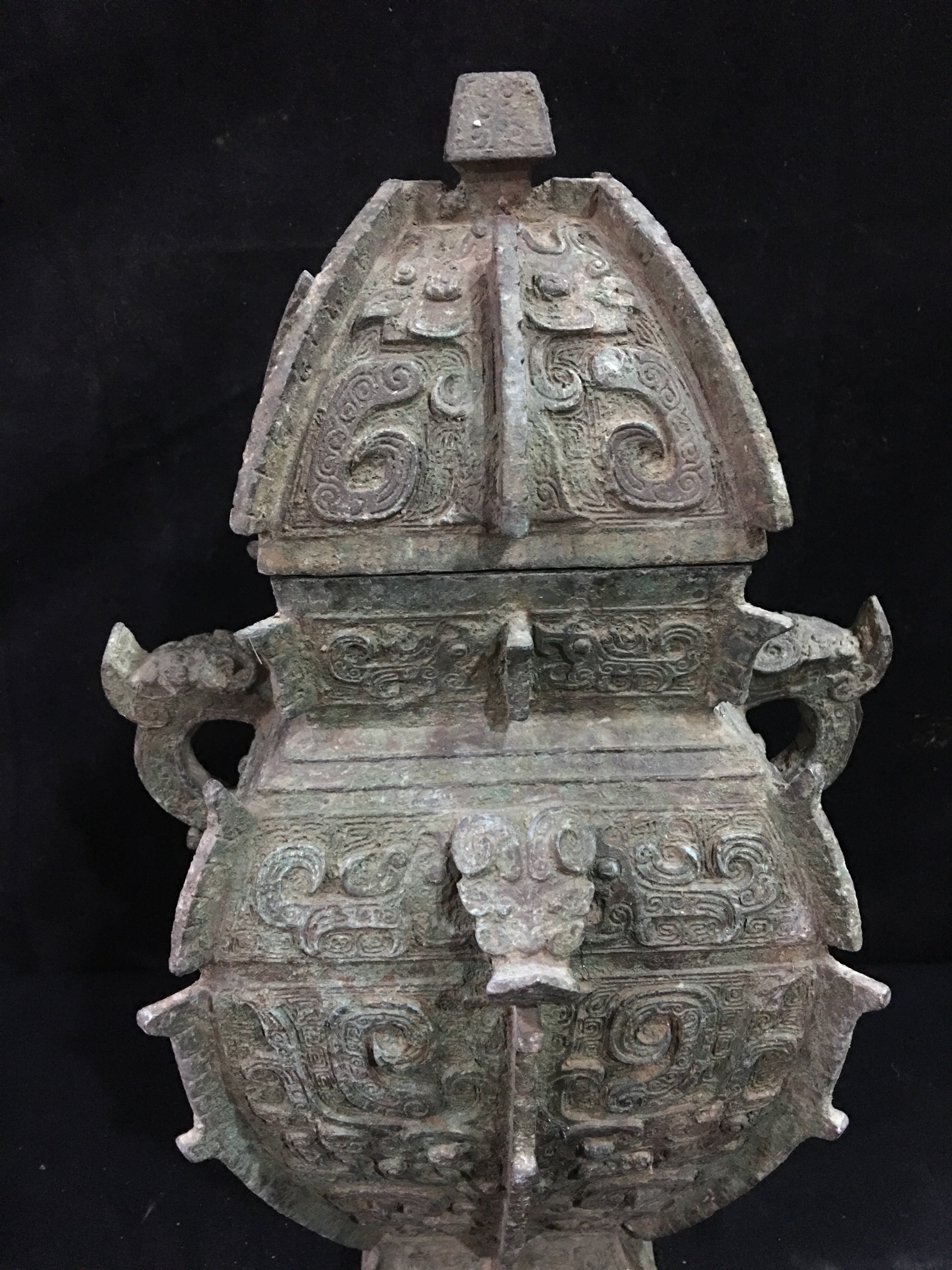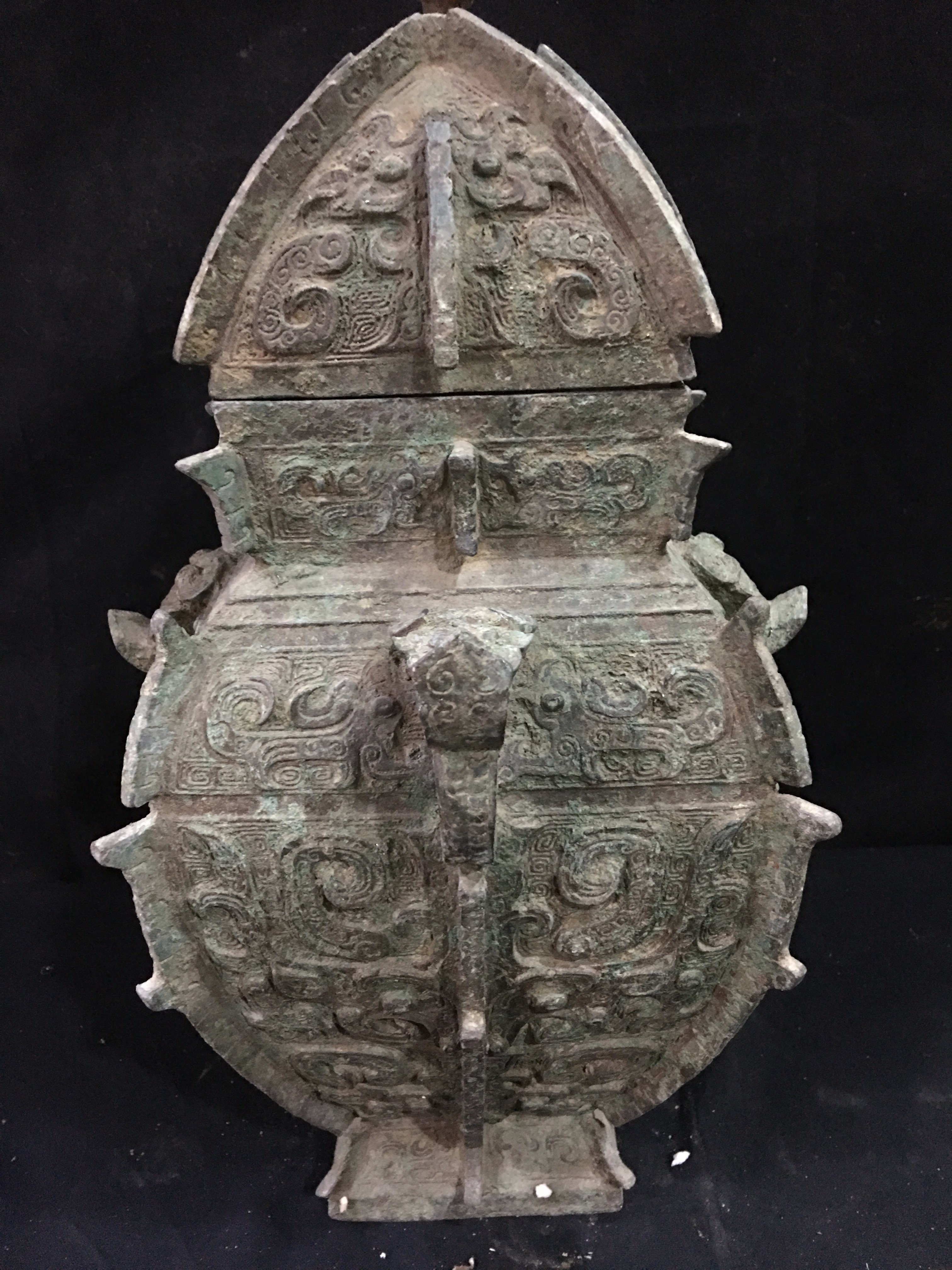 Old Zhou imitation antique bronze ware Shang Dynasty Gluttonous tattooed Founder Pit Dull Sound Red Spotted Green Rust Pendulum with antique film and TV props-Taobao