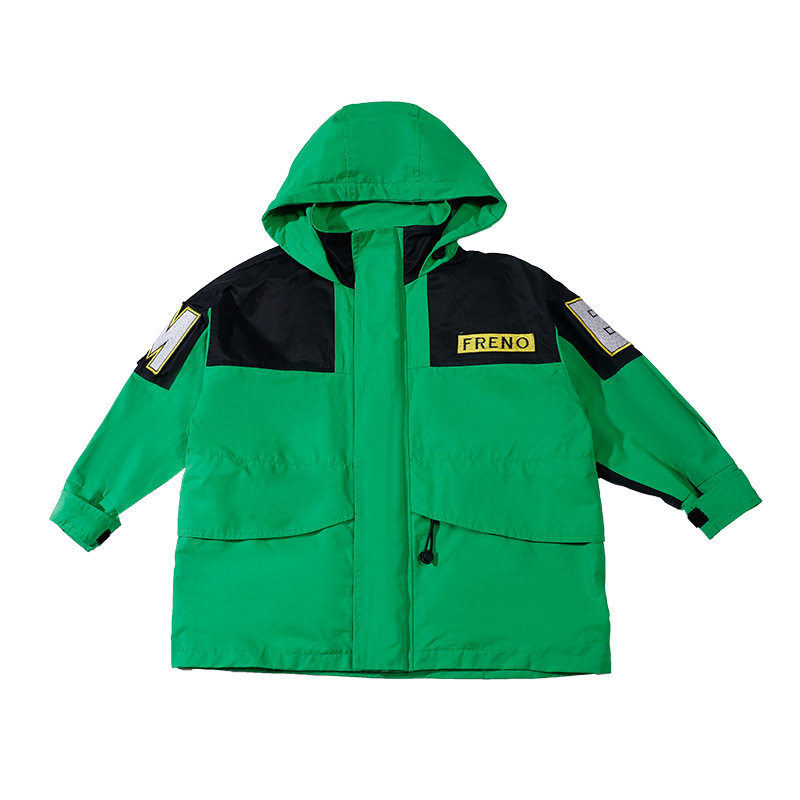 Long windshirt in long-term windshirt with green letters in the red letter hood