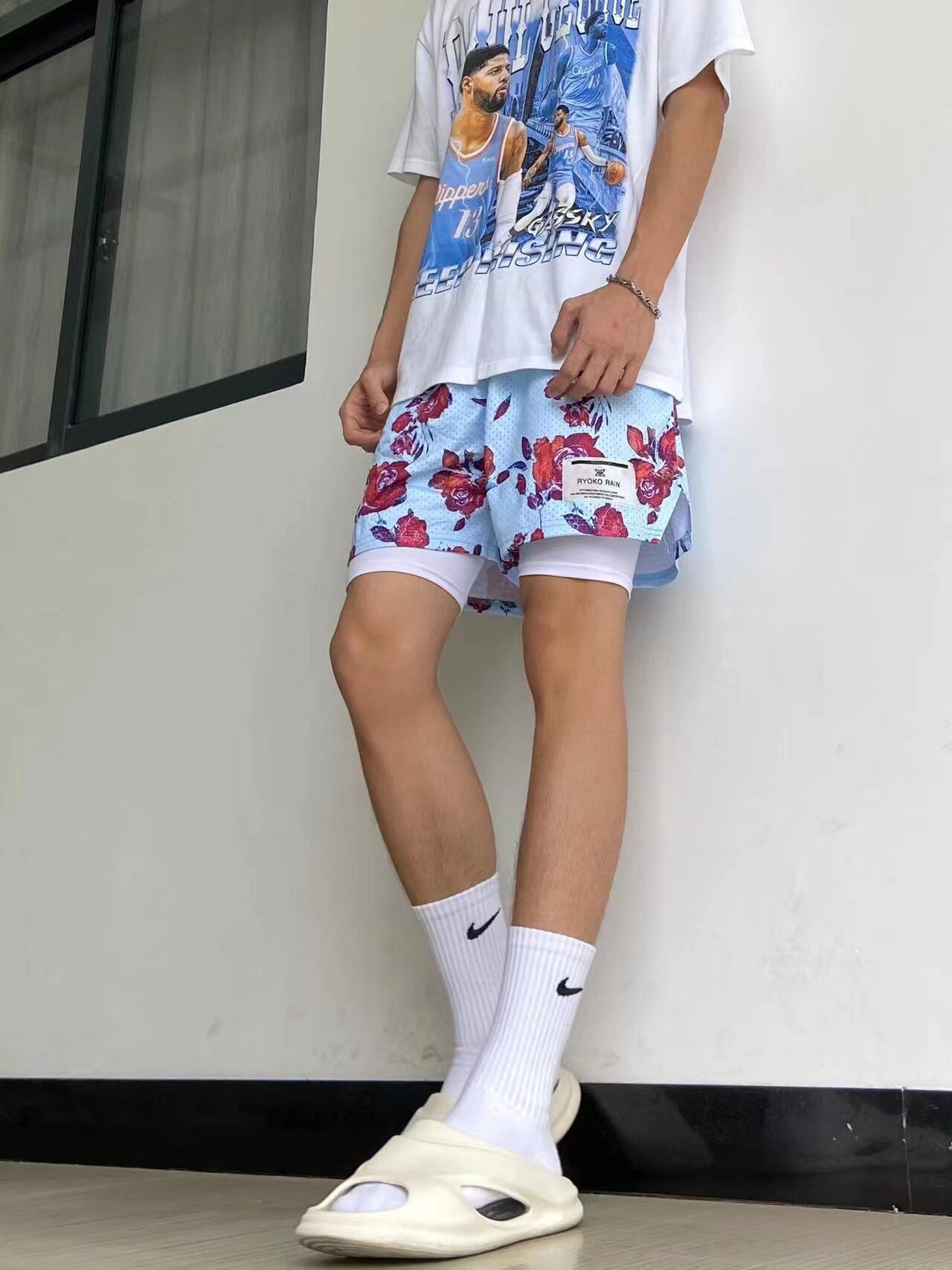American oil painting Wind RYO KOR AIN though kneecap 40% pants casual mesh shorts male and female summer basketball training