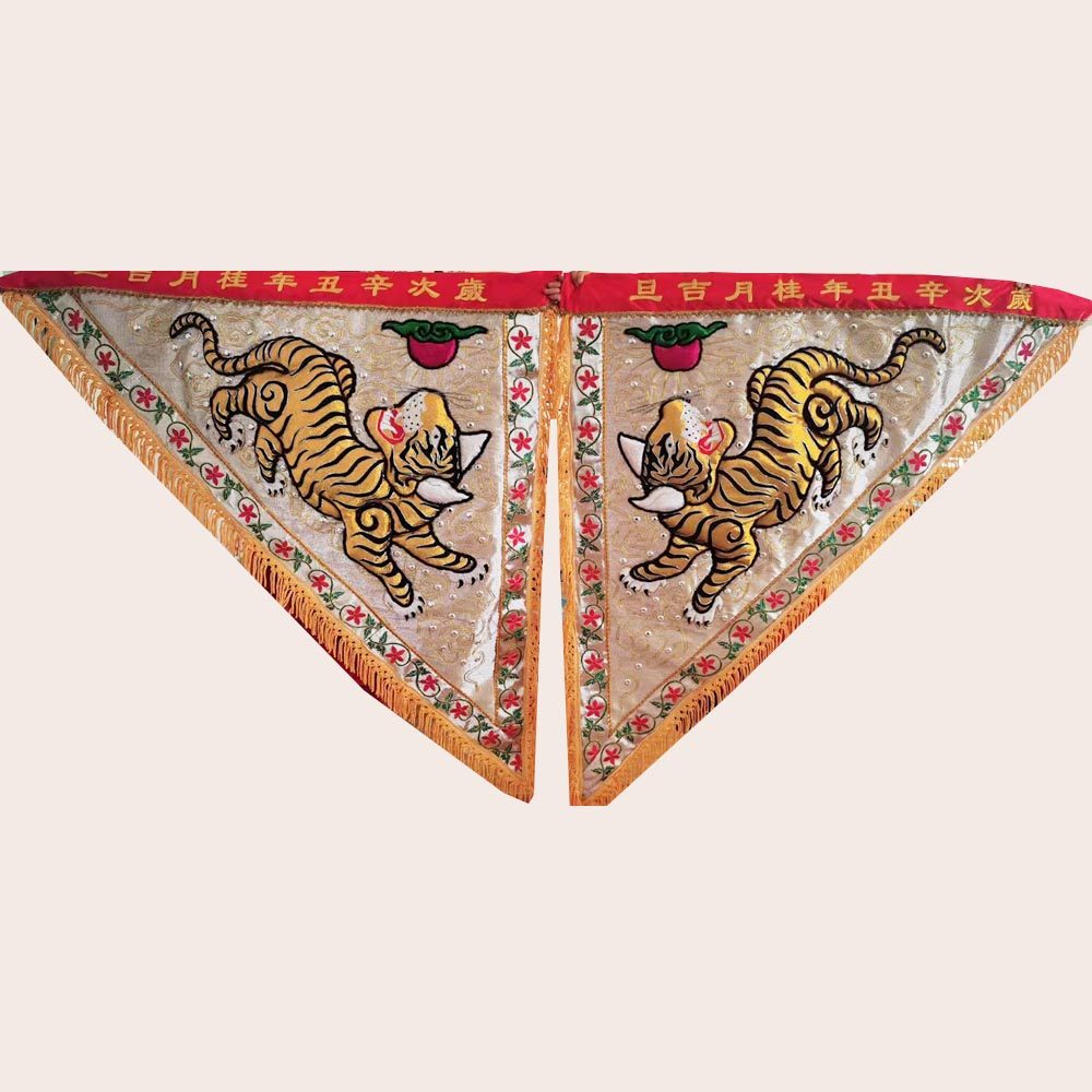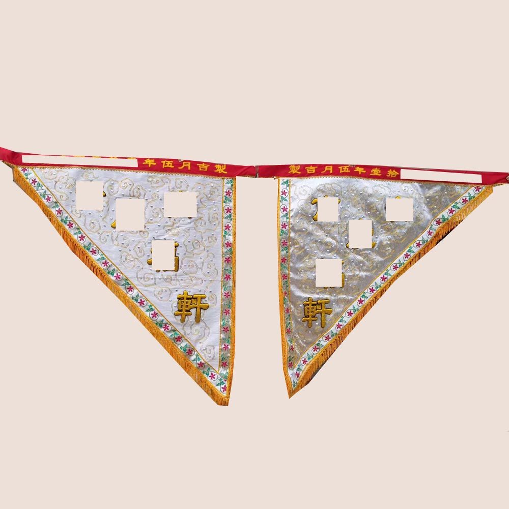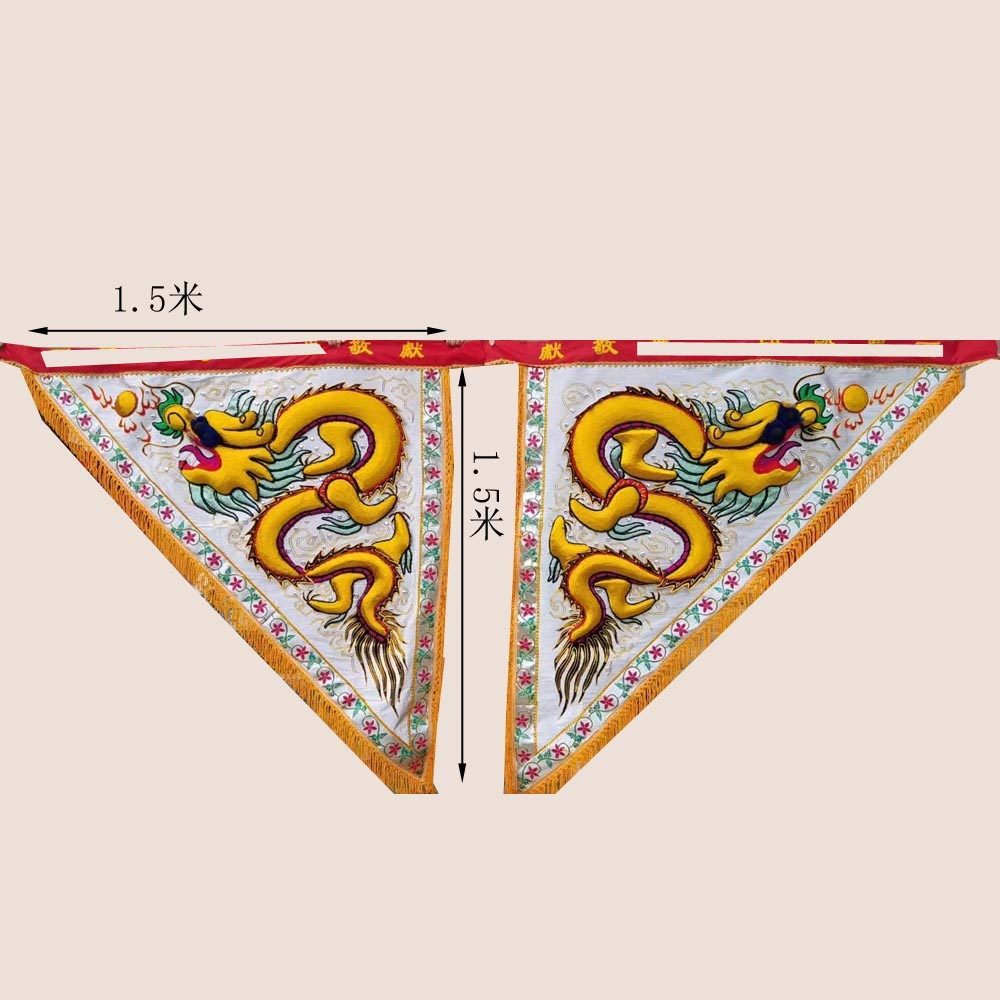 Tianlong embroidery silver onion cloth bottom handmade triangular floating dragon flag protruding tiger flag now unicorn open road flag one side dragon side character