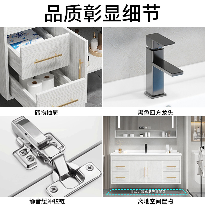 Solid wood bathroom cabinet ceramic integrated basin bath cabinet combination modern minimalist washbasin powder room washbasin