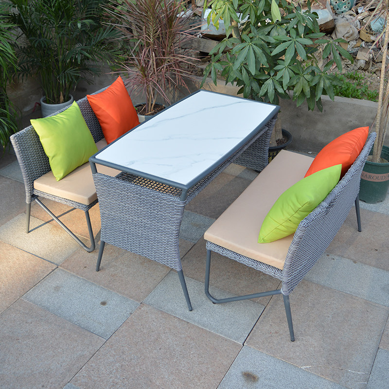 Outdoor balcony table and chairs Composition Three sets of rattan choreography Creative can incorporate balcony table and chairs Terrace Garden Open Courtyard