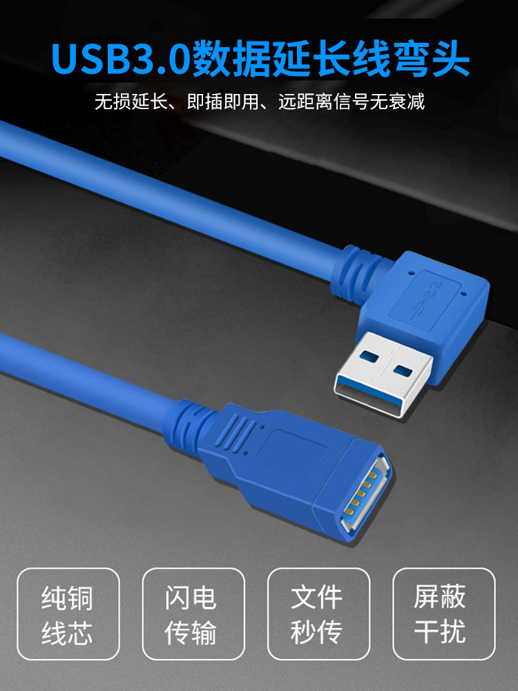 Sanbao USB3 0 bend 90 degrees male to female USB extension cable adapter cable 30CM, support USB3 0 interface desktop computer notebook universal SU-390L