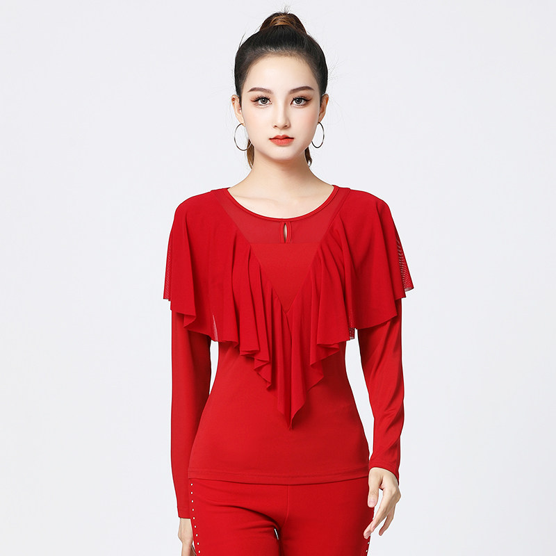 Morden Dance New Dance Suit Blouse Women's One-piece Suit Dancing and Dance Latin Dancing with Lotus Leaf Dance Suit-Taobao