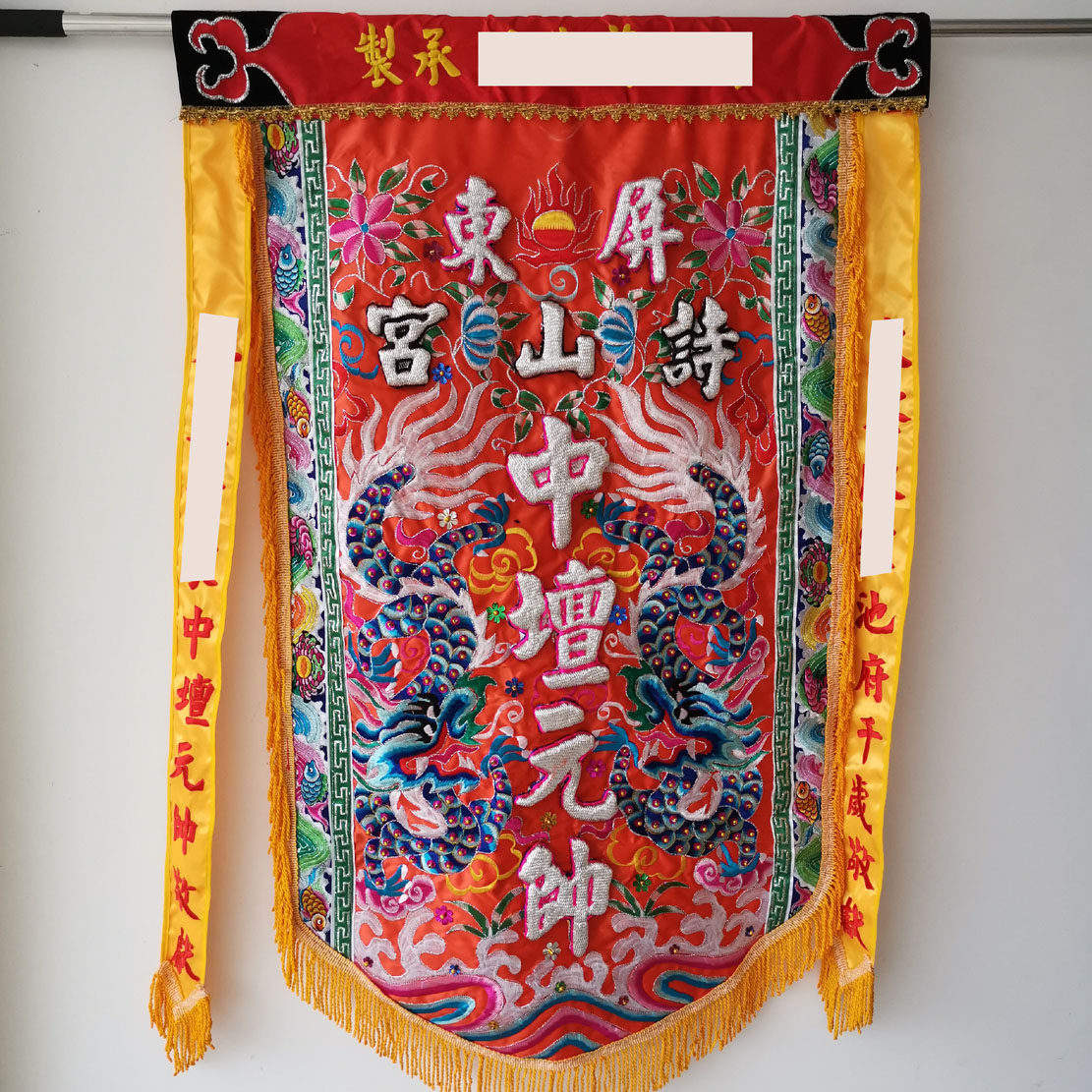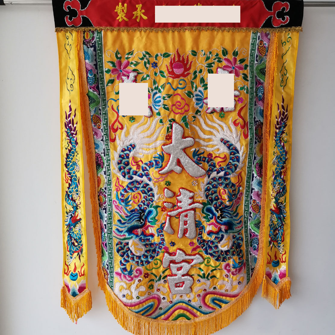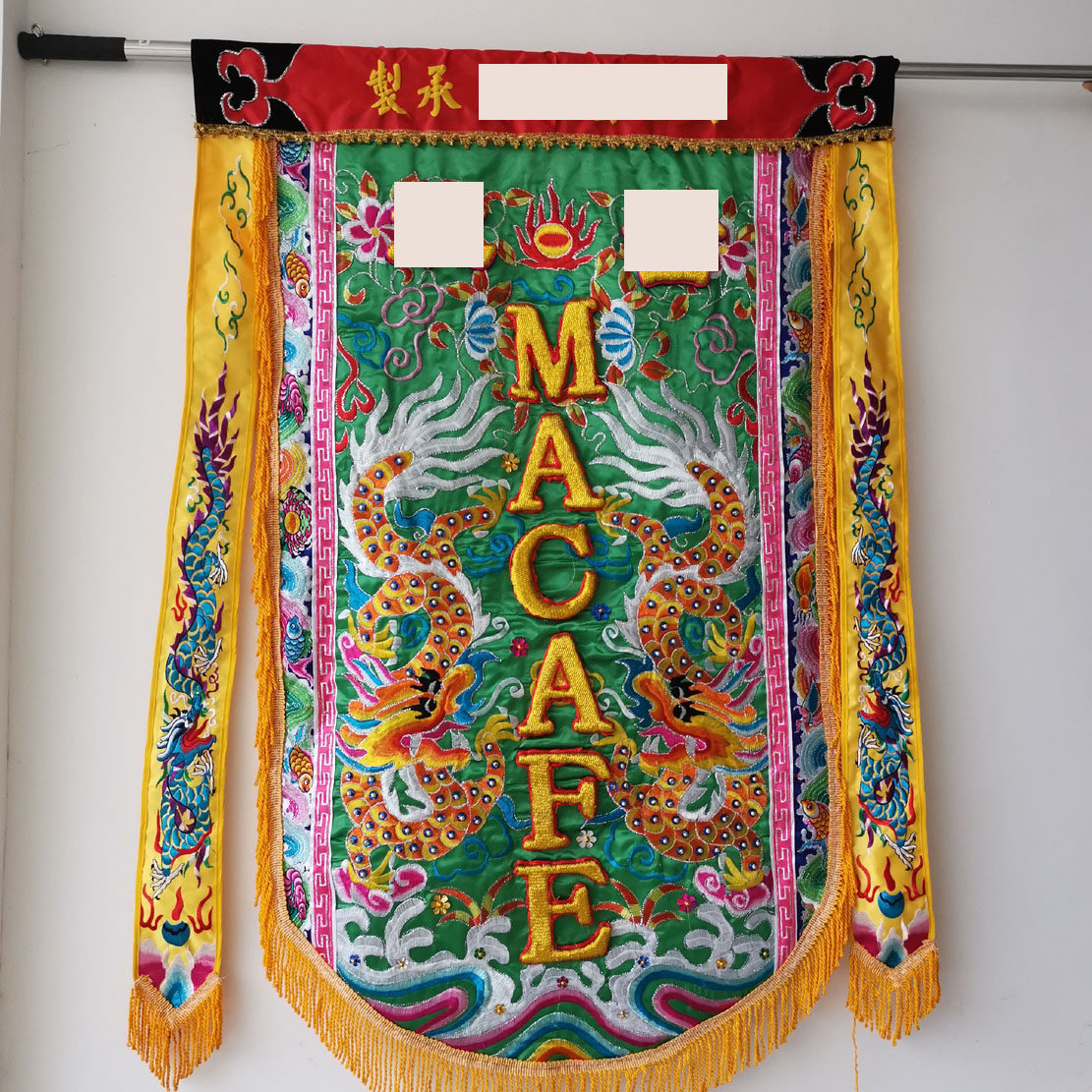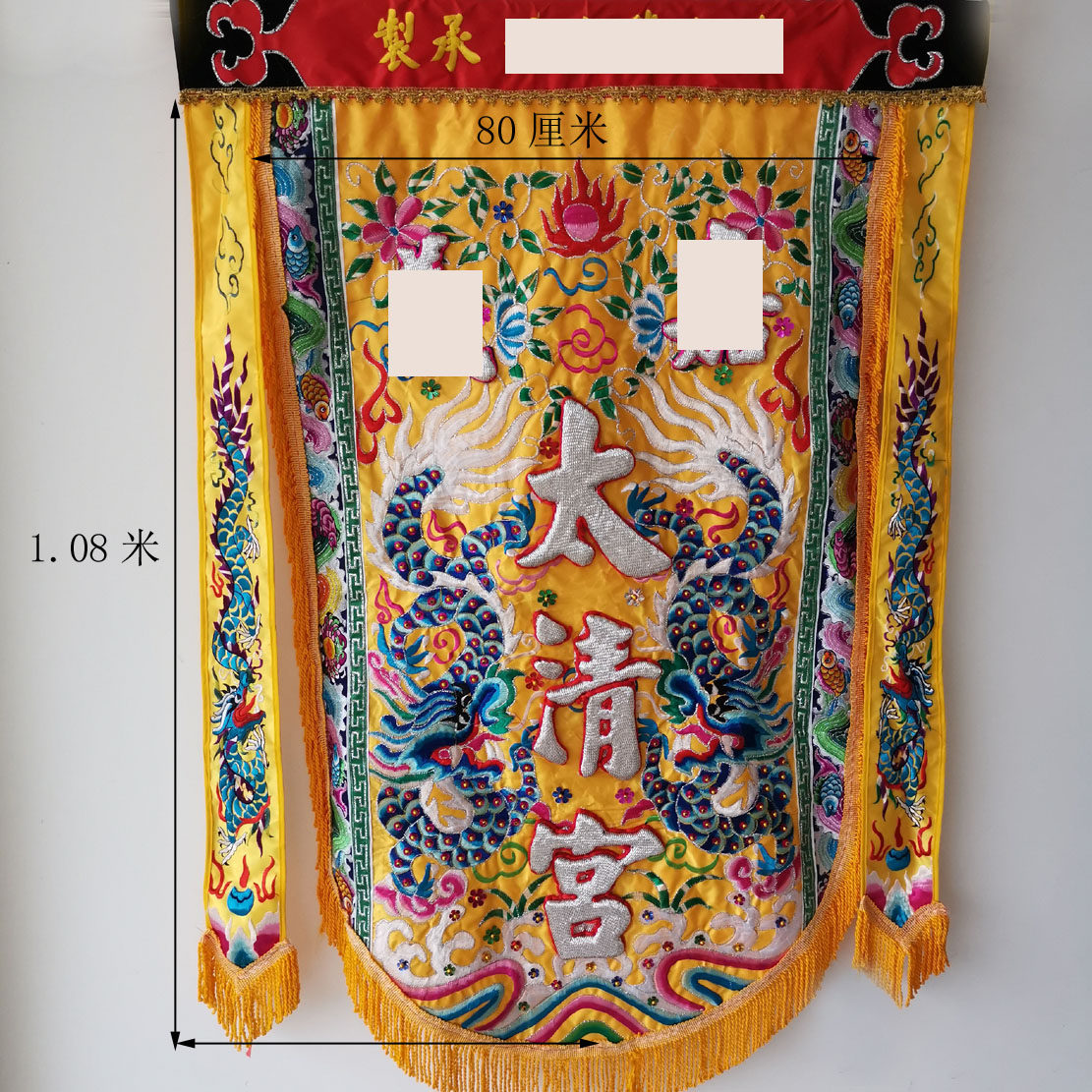 The handsome raised flag is 1.08 meters high and 80 centimeters wide. The handsome yellow flag is 1.08 meters wide and 80 centimeters wide. The handsome flag with red raised letters is 1.08 meters high and 80 centimeters wide.