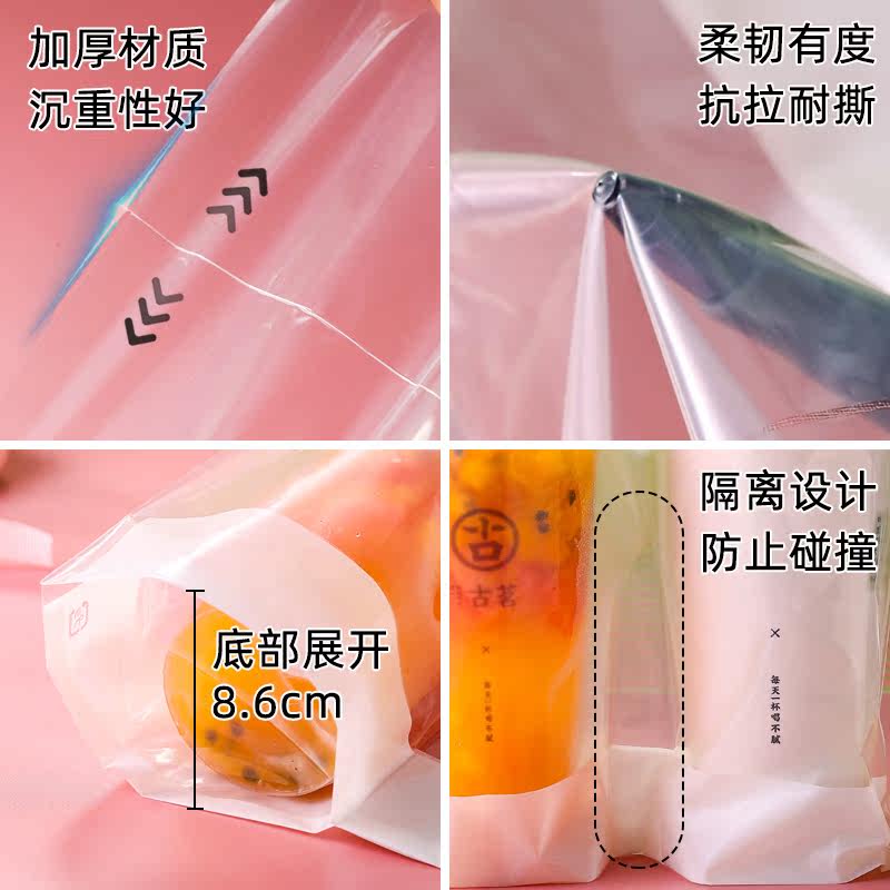 Disposable milk tea packaging bag beverage coffee delivery high transparent thickened double cup bag can be customized tote bag
