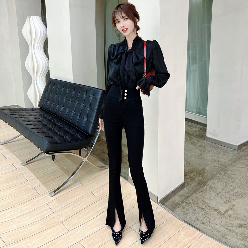 Kaka women's official flagship three rows of micro-laky magic small black pants high waist and belly feet