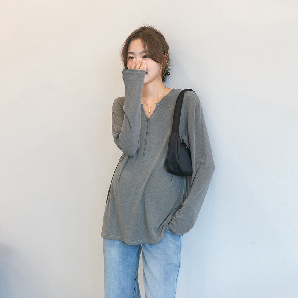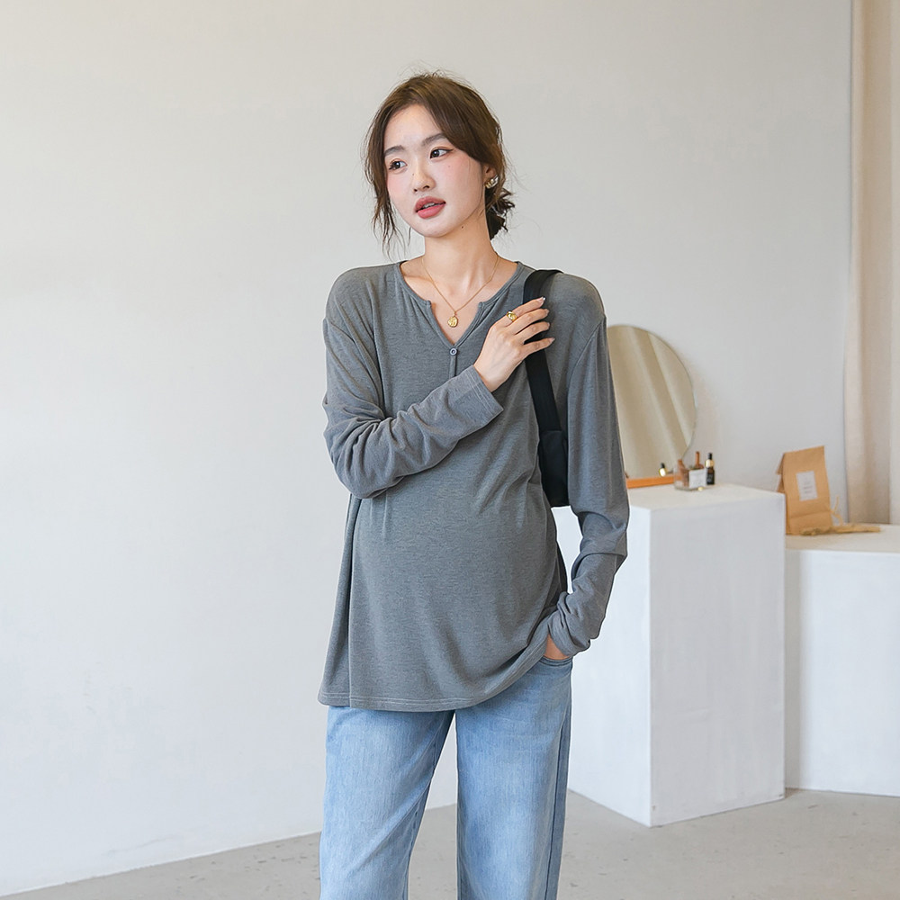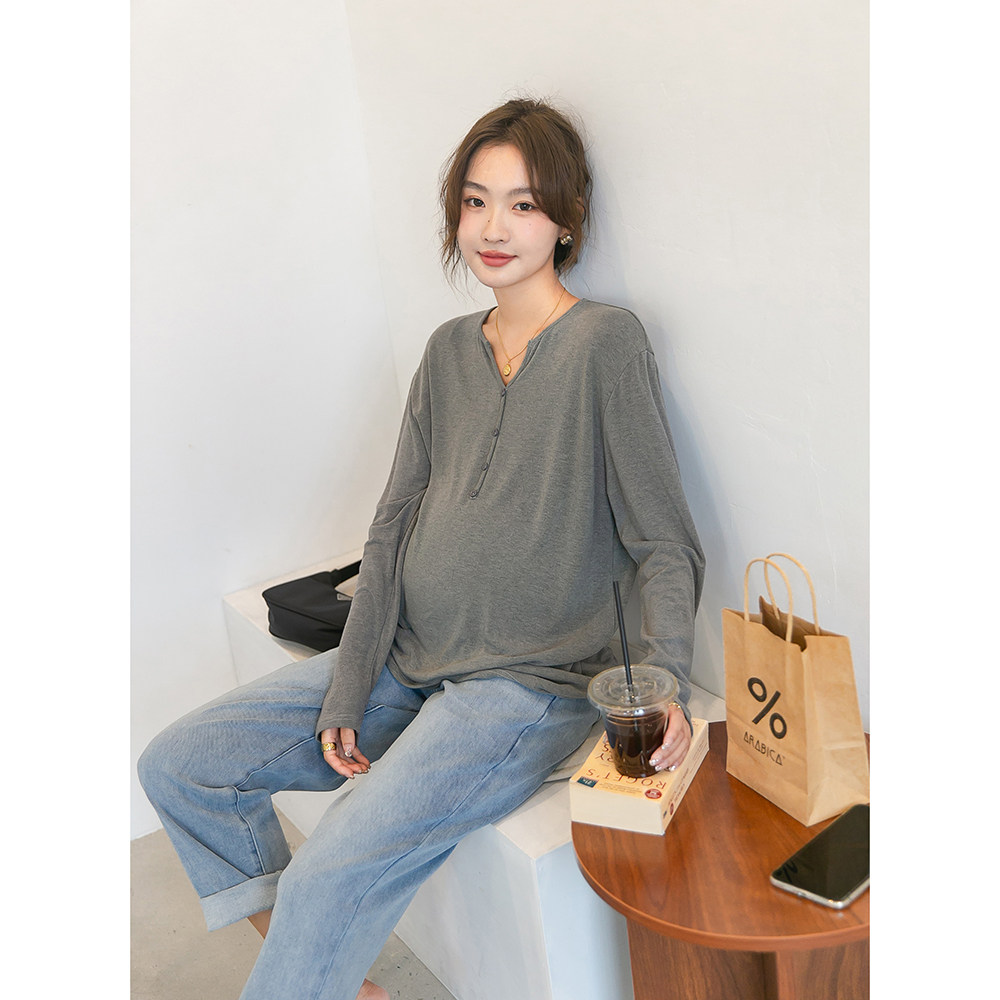 Read Jane about soft face mask T ~ gestation T-shirt blouses in spring and autumn Korean version with slim fit 100 lap comfortable elastic beating undershirt-Taobao