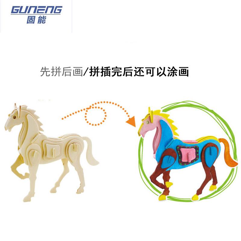 3D three-dimensional puzzle school handmade DIY children's toys wooden animal model assembled peacock swan horse