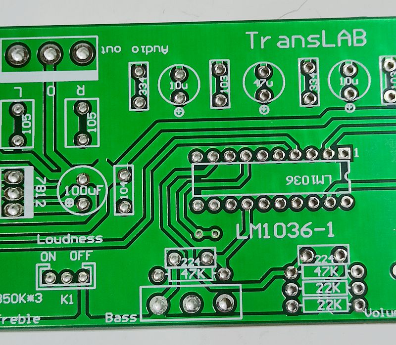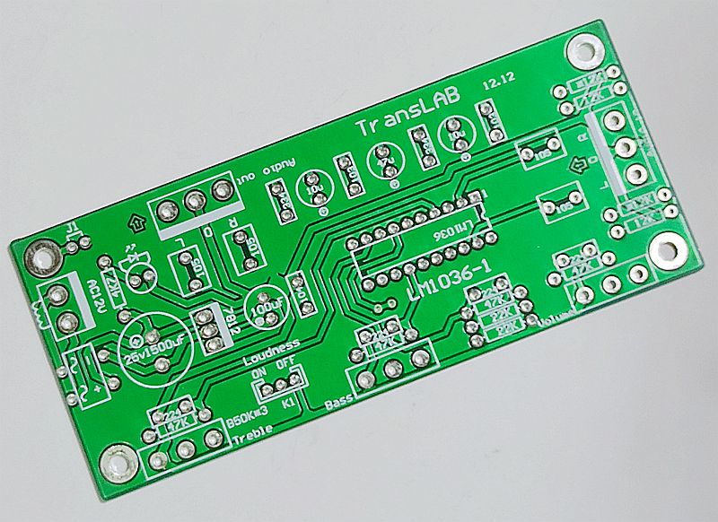 Single power supply LM1036 front level pitch plate with high bass adjustment front plate and other loud compensation volume control