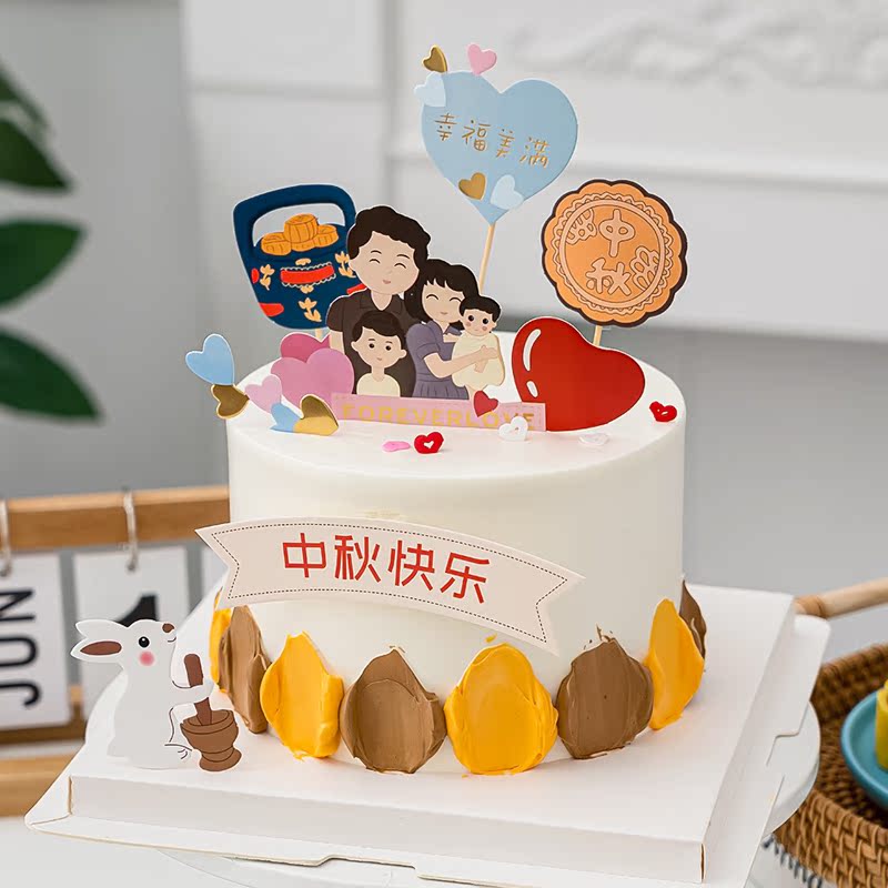 Mid-Autumn Eight-piece Set DIY Mid-Autumn Five-piece Set DIY Flowery Moon Round Straw Round Sign Happy Mid-Autumn Festival Big Insert a Family of Four Tube Money Soft Glue Moon White Rabbit Soft Glue Mid-Autumn Happy Mid-Autumn Soft Pottery New