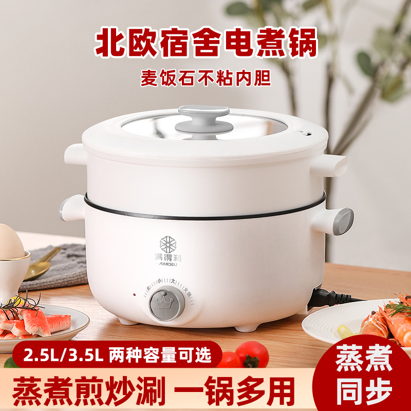 Dormitory electric cooking pot steamer large-capacity multi-functional cooking pot cooking instant noodles steaming portable household electric hot pot