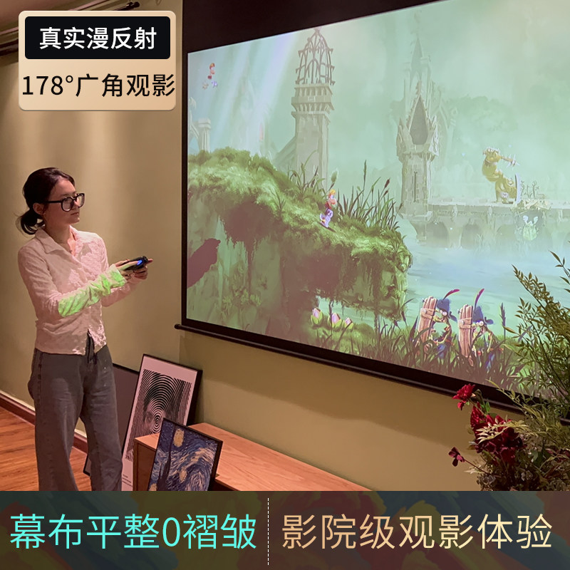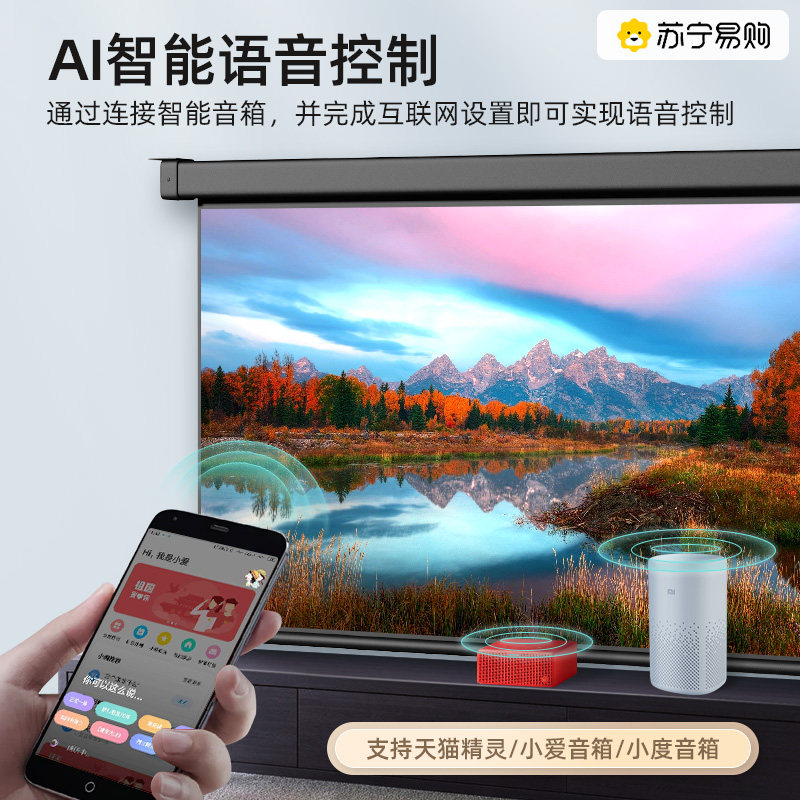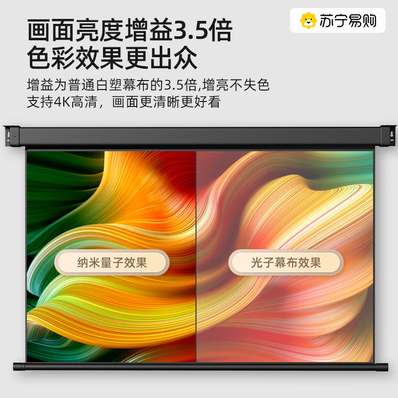 (Suning Recommended) concealed projection curtain cloth electric anti-light home nano quantum 100 inch 120 inch wall-mounted high-definition curtain cloth electric voice lifting projection cloth Home cinema 2331-Taoba
