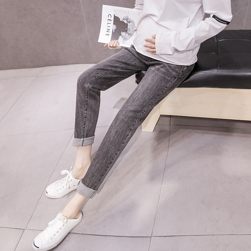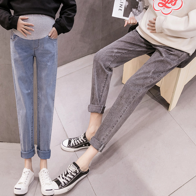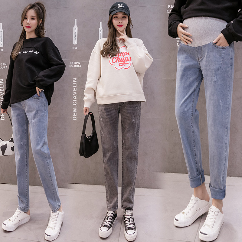 Pregnant women's jeans spring and autumn models go out loose belly pants straight-leg pants autumn outer wear casual elastic trousers autumn clothes