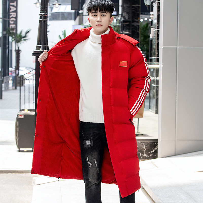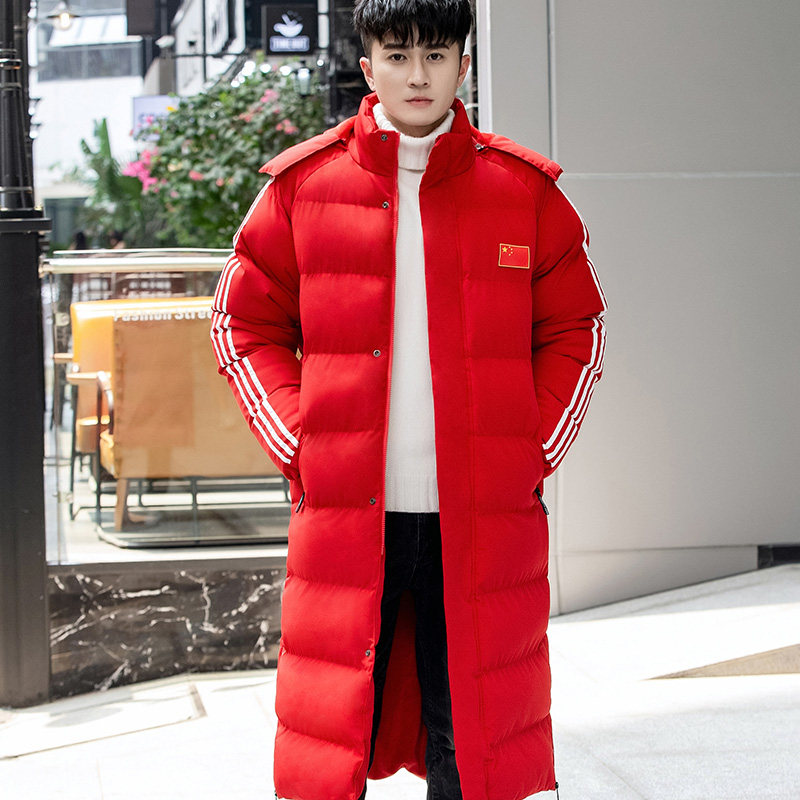 Cotton jacket men's long section thickened over the knee sports leisure coat female art test dance cotton jacket winter training custom down cotton jacket