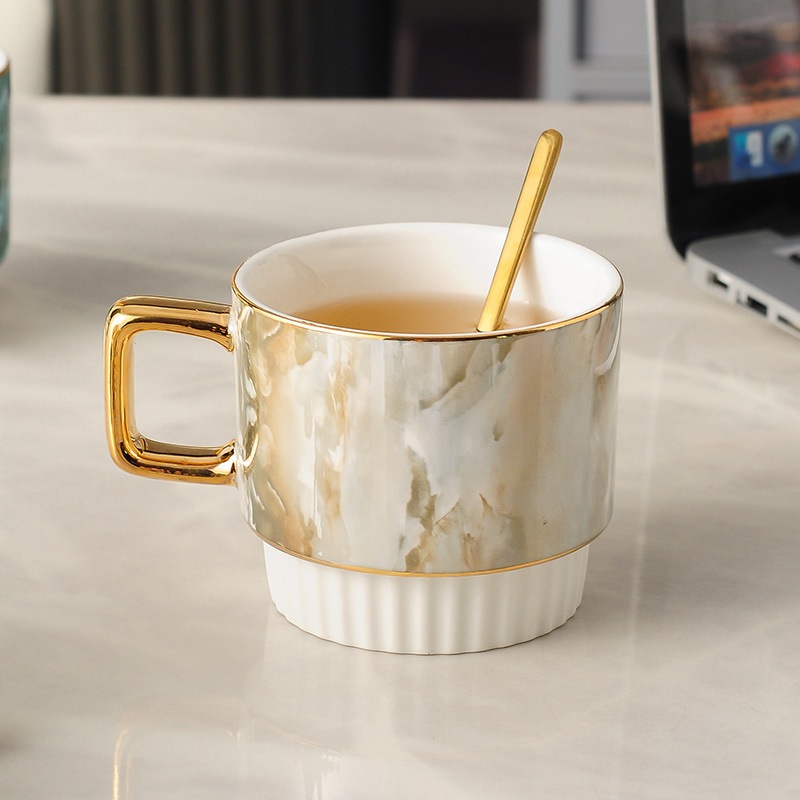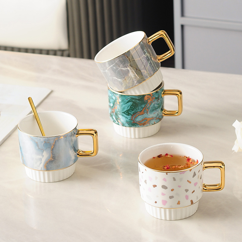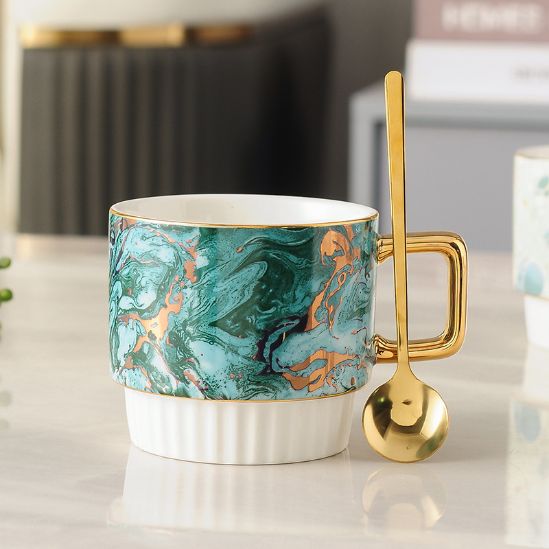 Liujinsha mug (spoon free) terrazzo mug (spoon free) agate green mug (spoon free) imperial gray mug (spoon free) gold jade mug (spoon free) gold blue stone pattern