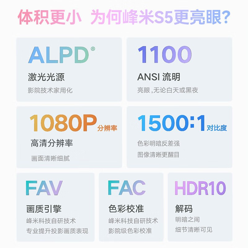 (Thin and light flagship) Fengmi S5 laser projector 1080P ultra-high definition home bedroom wall projection small dormitory outdoor projection camping mini portable mobile phone screen cloth integrated new model