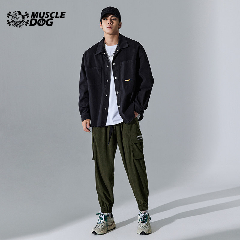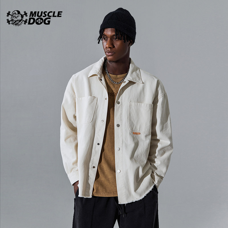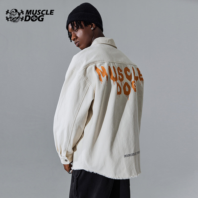 Muscle Dog Spring and Autumn High Street Tide Brand Sports Leisure Thin Jacket Loose Stand Collar Brushed Denim Jacket Men