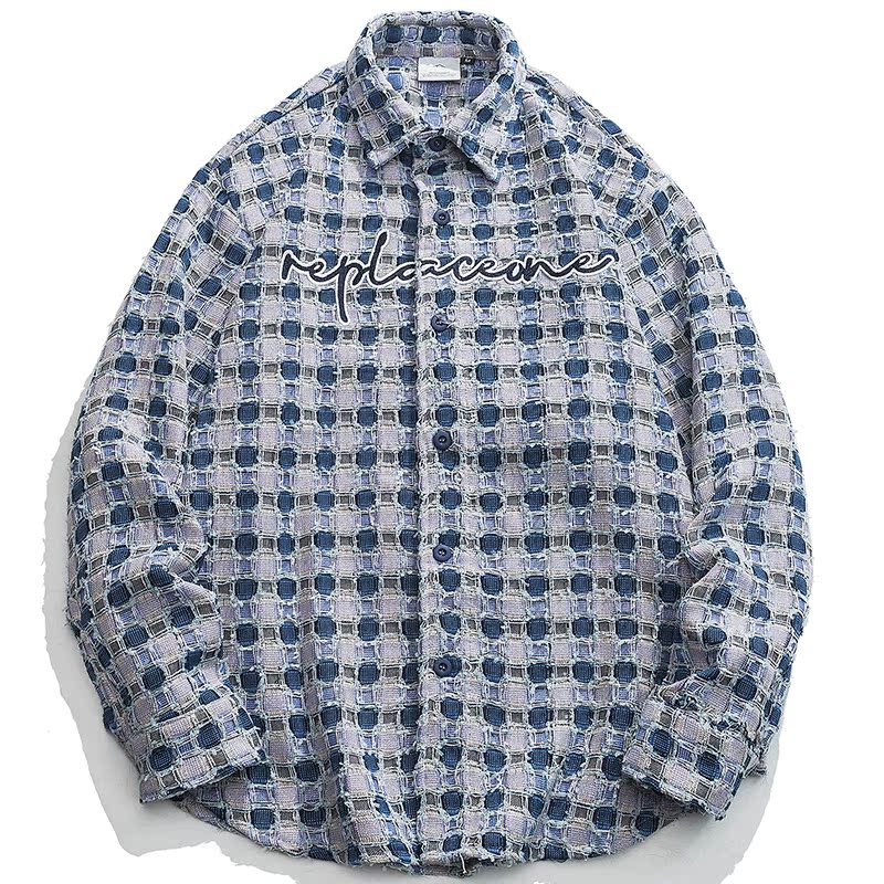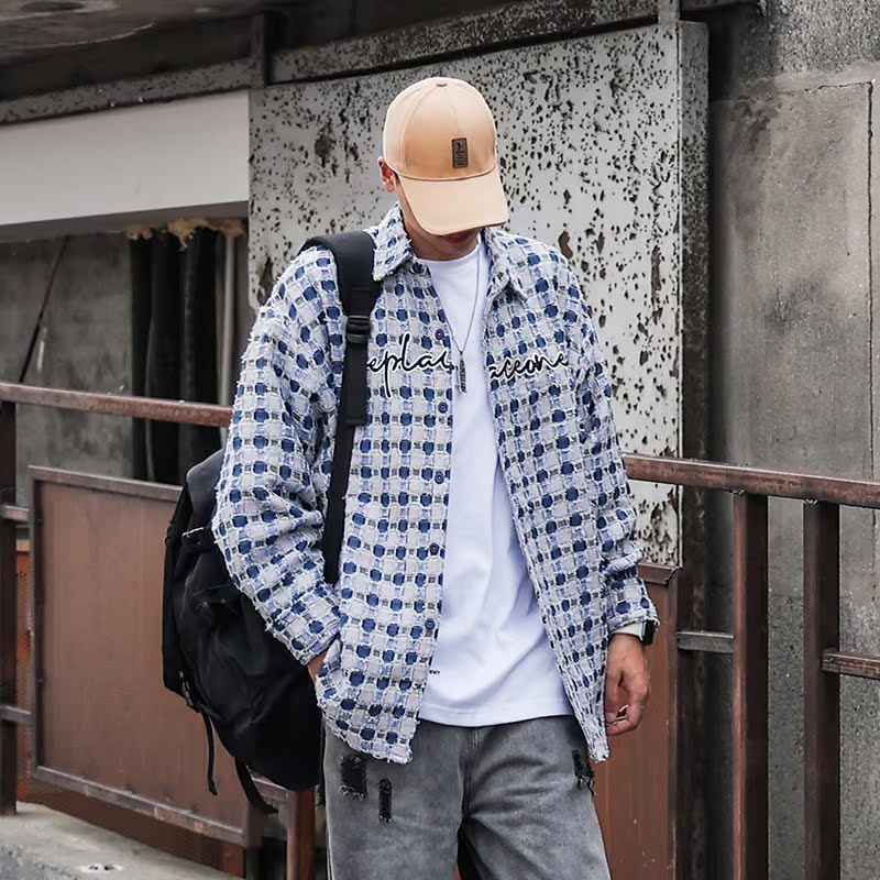 Autumn new plaid long-sleeved shirt men's and women's trendy brand loose all-match retro casual letter embroidery shirt jacket