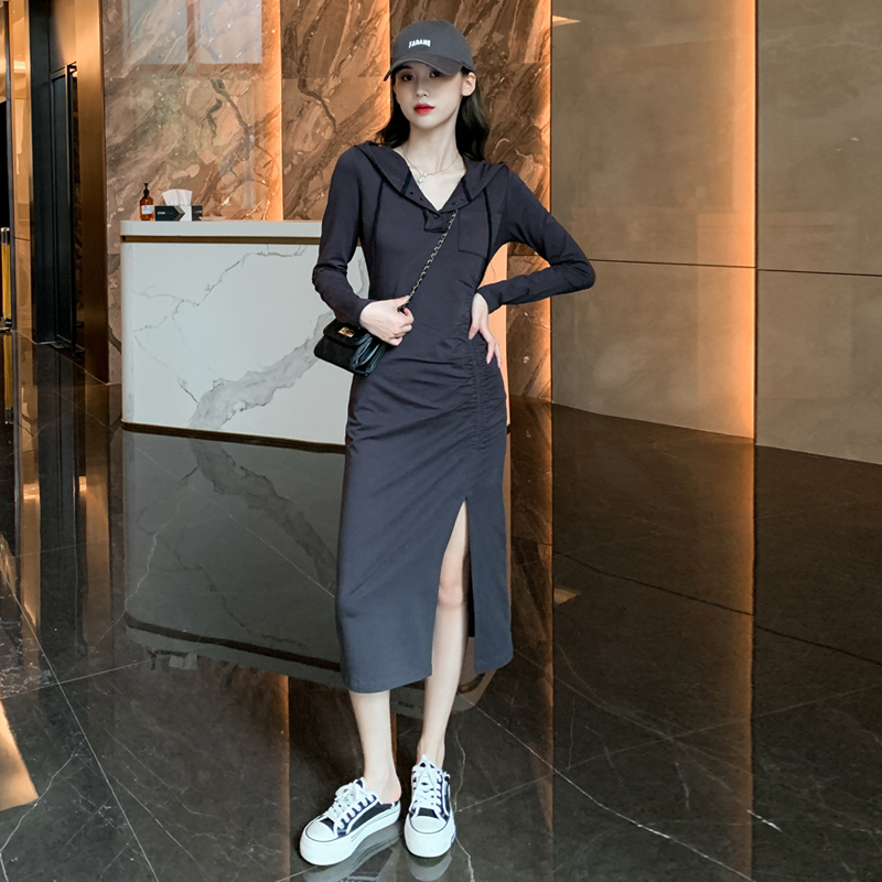 Autumn dress Women 2023 New Lions dress Long sleeves Slim Fit Slim Casual Skirt Temperament Long Skirt Dress-Taobao