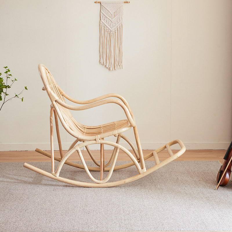 Modern minimalist rattan chair rattan rocking chair adult lounge chair balcony home leisure chair real rattan rocking chair rattan rocking chair