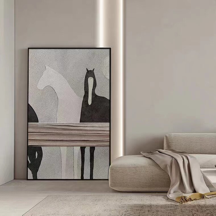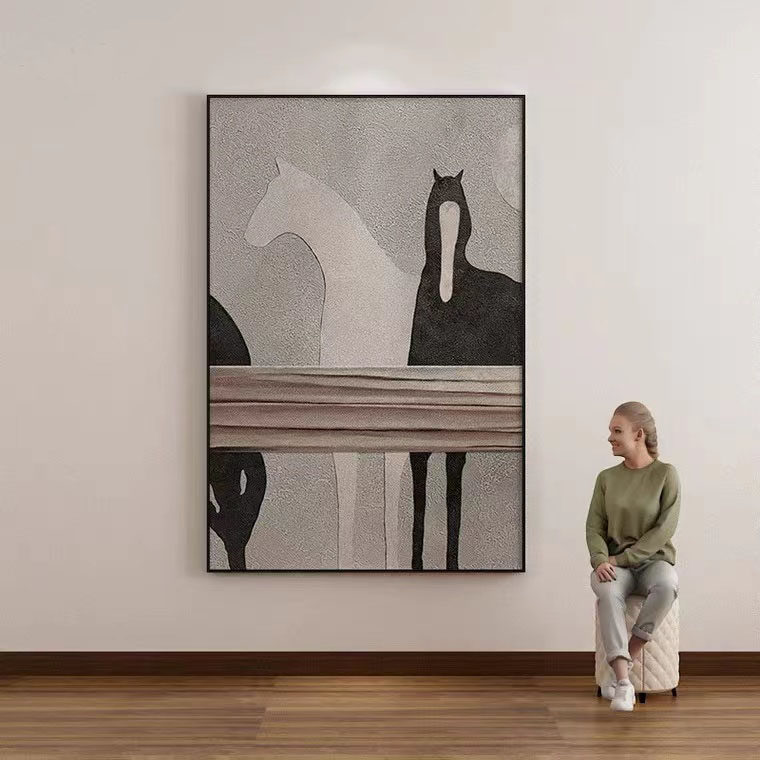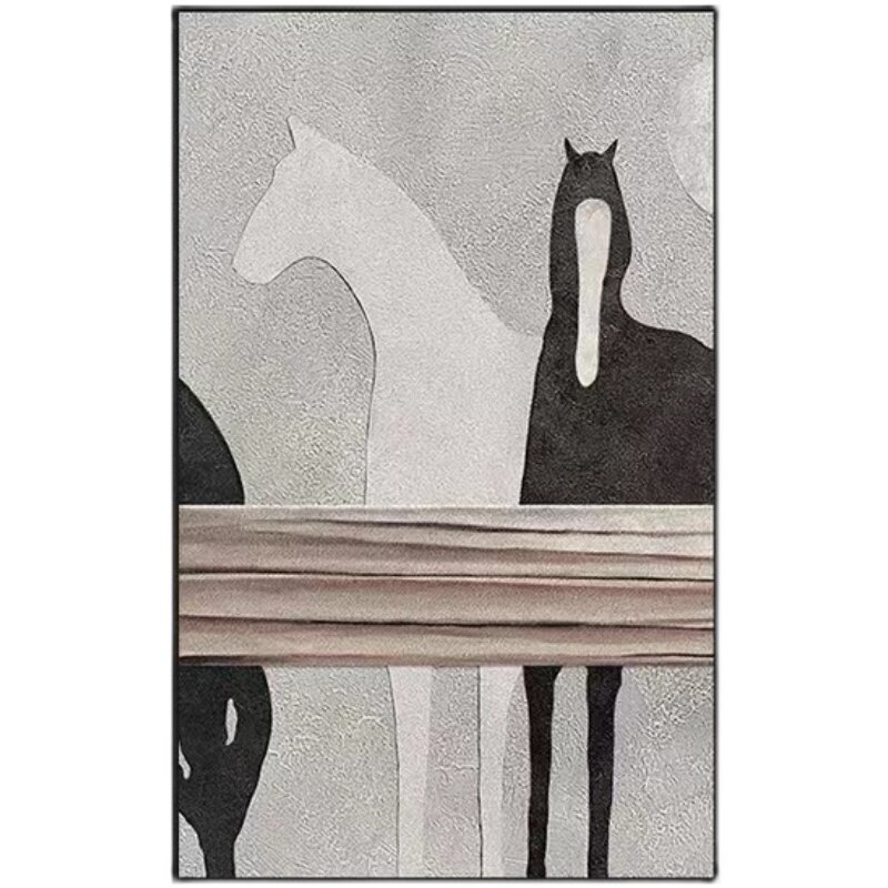 Nordic abstract hand-painted oil painting black and white horse simple porch texture study living room sofa landing wabi-sabi decoration - Taobao