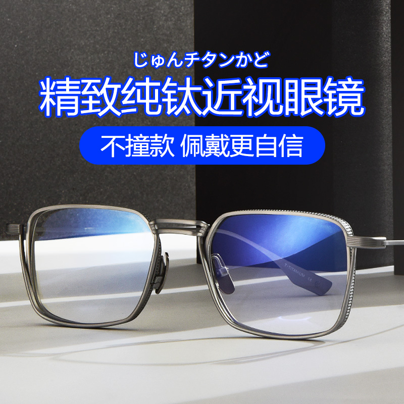 Japanese pure titanium highly myopia glasses frame suitable for men full-frame glasses ultralight metal titanium alloy glasses frame anti-blue light color change glasses for seven days free trial seven days free trial glasses