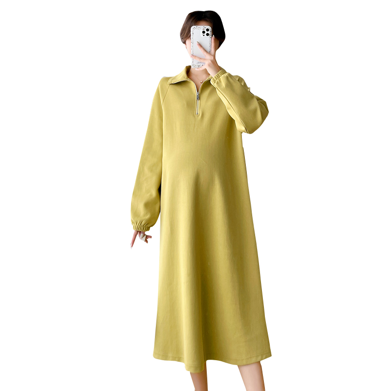 2022 new maternity dresses autumn and winter fashion large size Western style pregnant women tide mom mid-length version over the knee skirt women