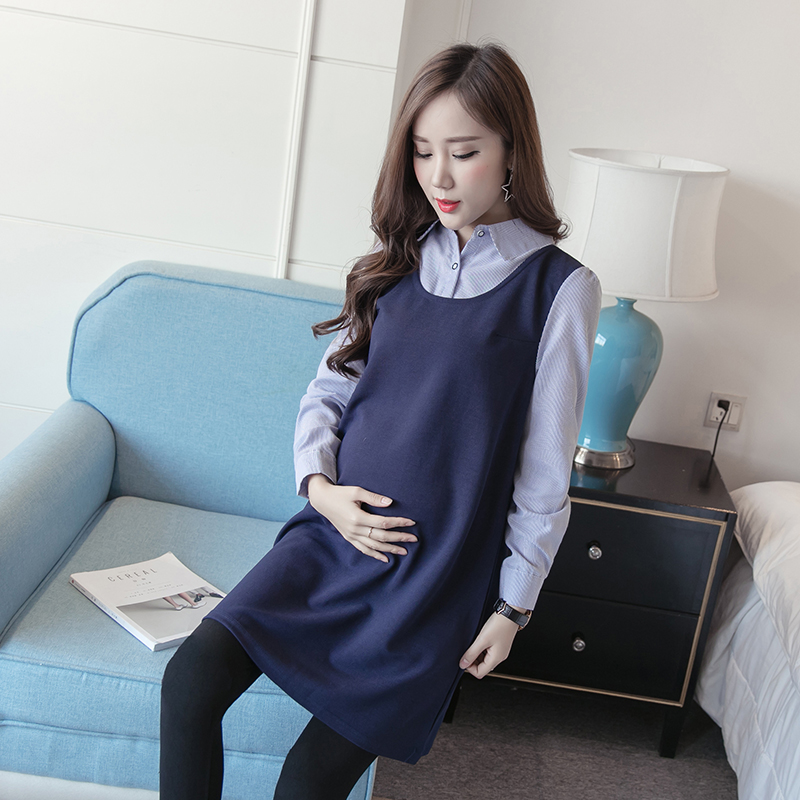 Net red maternity dress mid-length Korean style 2022 new solid color temperament shirt skirt tide mom spring and autumn