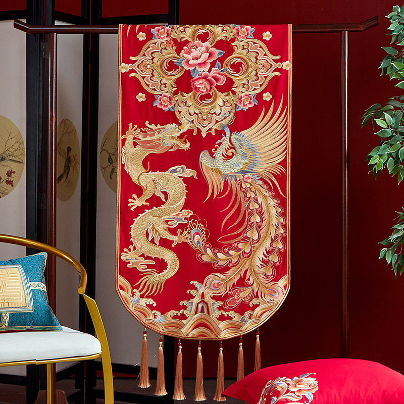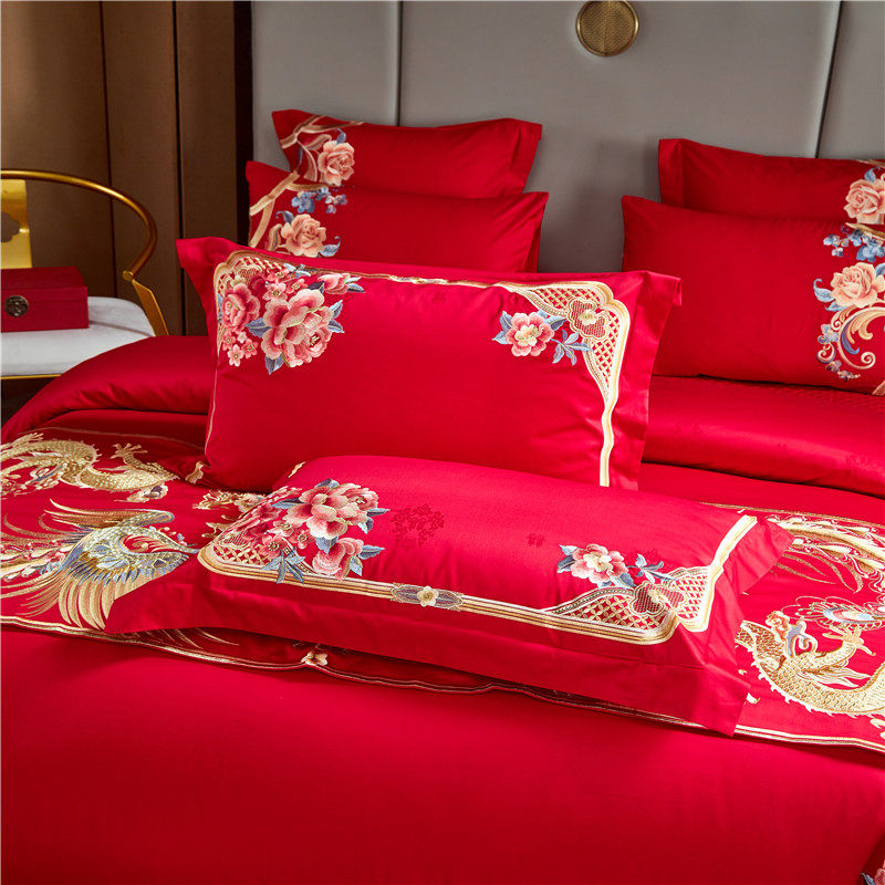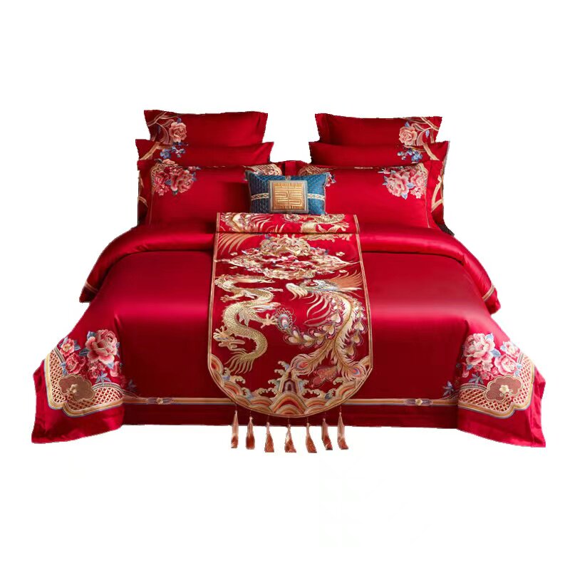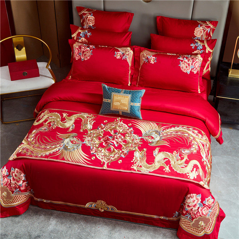 Wedding Longfeng Four Pieces of Marriage Hotel Bed Supplies New Married Big Rough Sheet Embroidery Pure Cotton Cotton